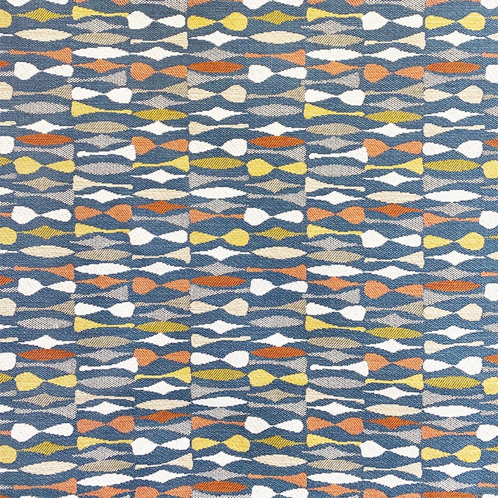 Create one-of-a-kind furniture that you won’t see anywhere else with Grand Canal.  Freshen up an old armchair with some new upholstery. Grand Canal is a unique and eye-catching design woven with a variety of different textures to give the overall design a lovely unique depth. The wonderful tones of orange and yellow patterns on a denim blue background will be the perfect new addition to your space.  This hardwearing fabric is ideal for upholstery, however, it would make opulent heavy curtaining and would add brilliant colour and texture in smaller throw cushions.