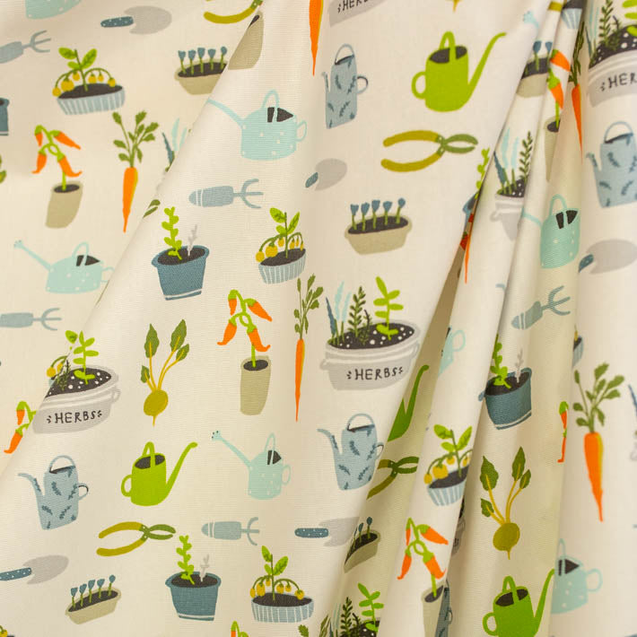 Judy's Garden is a quirky and characterful prints designed to be a fun addition to your home whether it be for the kitchen or bathroom or for a kids bedroom. Bright, playful motifs keep the mood light and add a lovely pop of colour. Suitable for curtaining, roman blinds, cushions, occasional upholstery or other home furnishings.