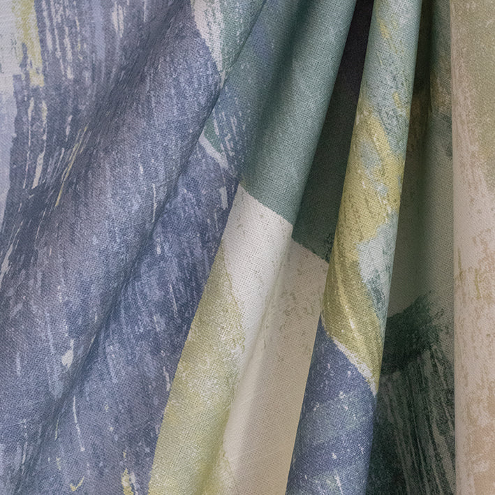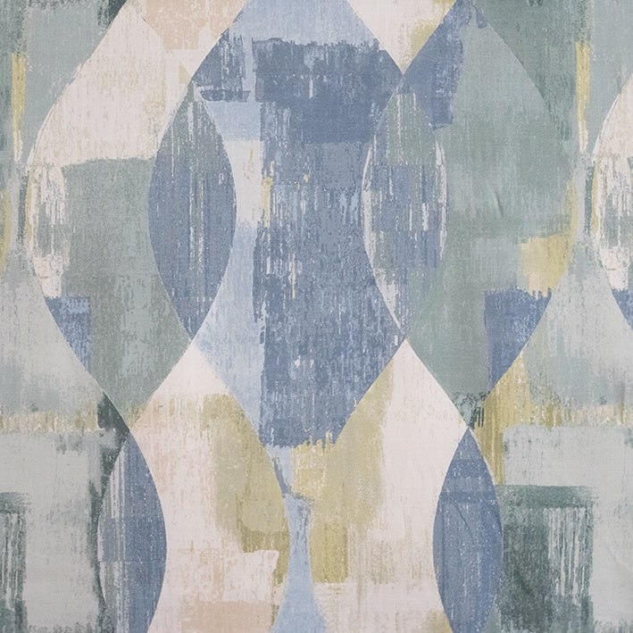 Overlapping blues and greens create an effect like flowing raindrops on a windowpane in this print. Calming and serene, this fabric can be used for cushions, curtains, and occasional upholstery.