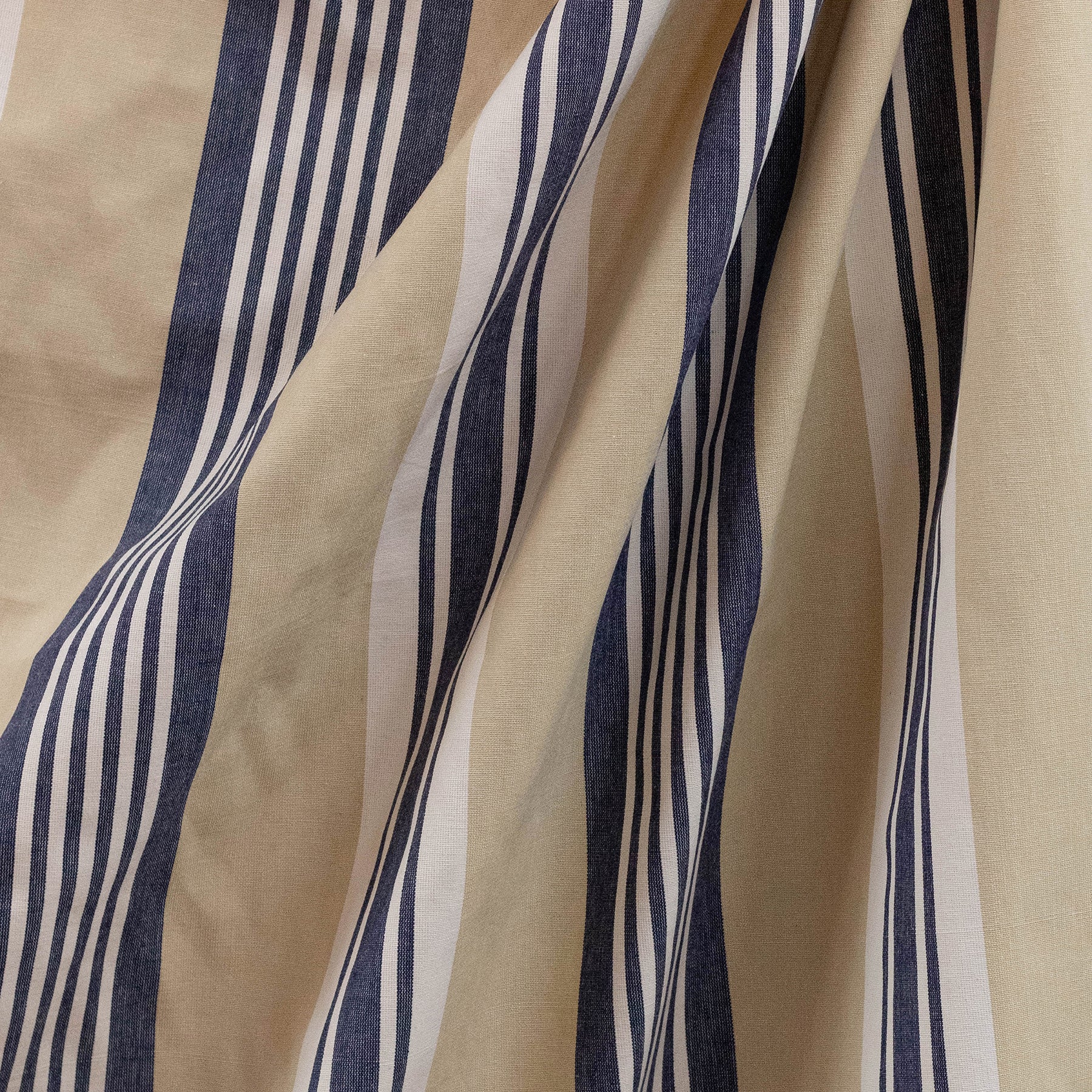 Teddington Navy is a classic! A fantastic heavyweight cotton stripe with striking navy stripes, alternating with small taupe stripes. This fabric is a brilliant choice for everyday upholstery, heavy eye-catching curtains, or add a fun pop of red in cushions.