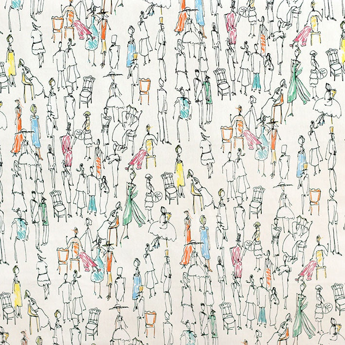 Times Square is a playful doodle-style print, depicting a crowd of people. Featuring pops of colour on a bright white cotton base cloth - it is perfect for curtains, occasional upholstery, cushions, and more!