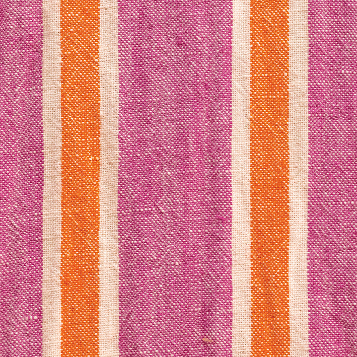 Playful yet refined, Tutti Studio Fizzy Stripe Pink Linen Fabric reinvents the classic stripe with a bold new twist. Featuring vibrant yarn-dyed Raspberry and Flame stripes, offset by a subtle Oyster tone, this premium furnishing fabric delivers colour, character, and creativity in every thread. Woven from 100% European linen and enzyme washed for irresistible softness and drape, it’s ideal for curtaining, cushions, and blinds that make a joyful impact in any interior.