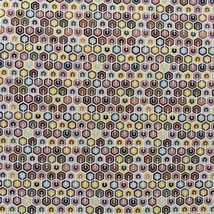 Reboot is an incredible multi-coloured woven geometric jacquard upholstery fabric. In stunning soft colours, with contrasting darker tones this fabric is the perfect modern choice to add some colour and pattern to your interior. Perfect for everyday use upholstery, cushions and heavy curtains.