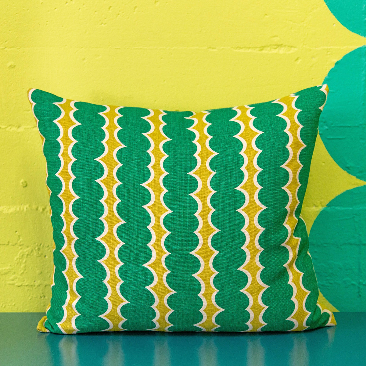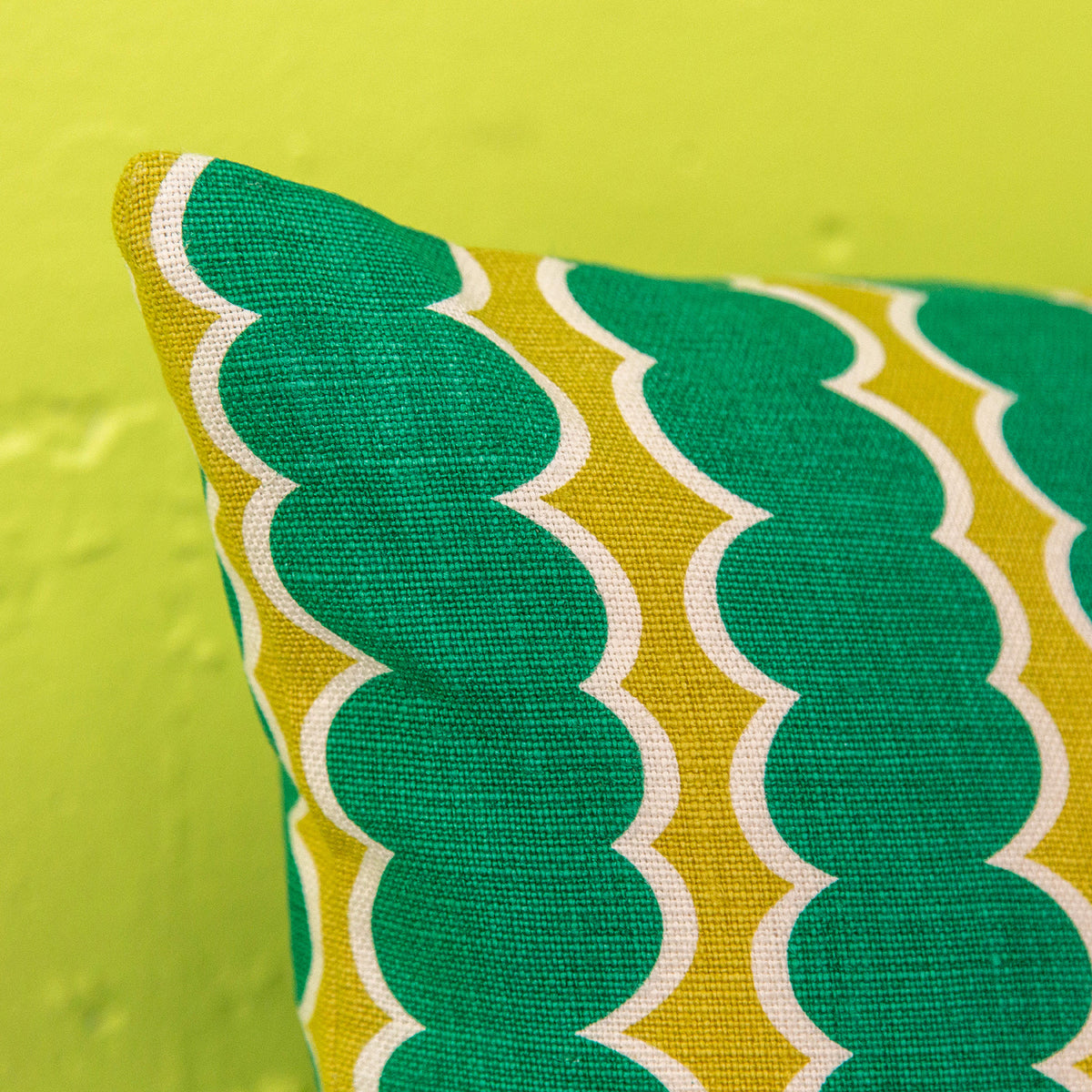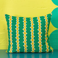 Bright, graphic and bold cushion in Tutti's Swizzle Green printed linen. The perfect statement cushion for your space.