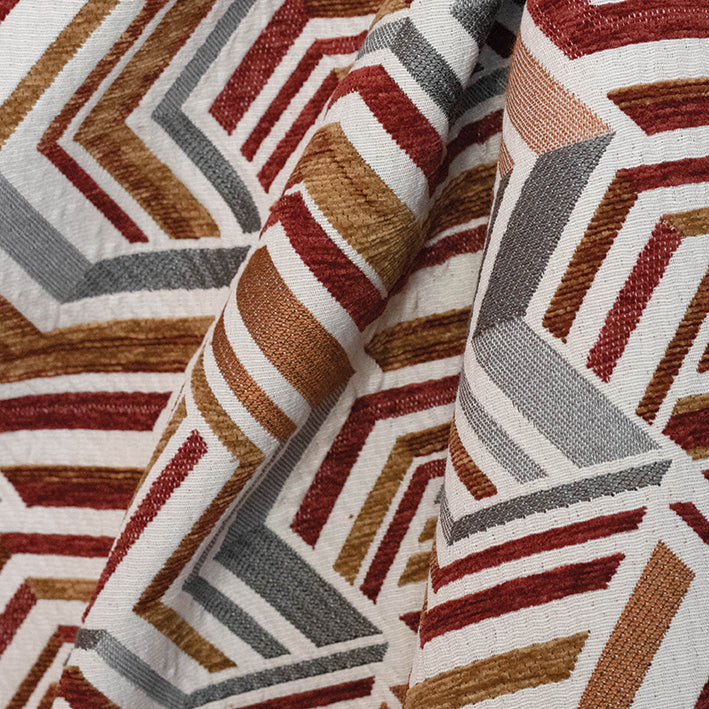 Arrowtown is reminicsent walking through the South Island town during Autumn, with muted oranges, reds, blues and pinks. This fabric would look incredible on curtains, blinds, cushions, and everyday upholstery.