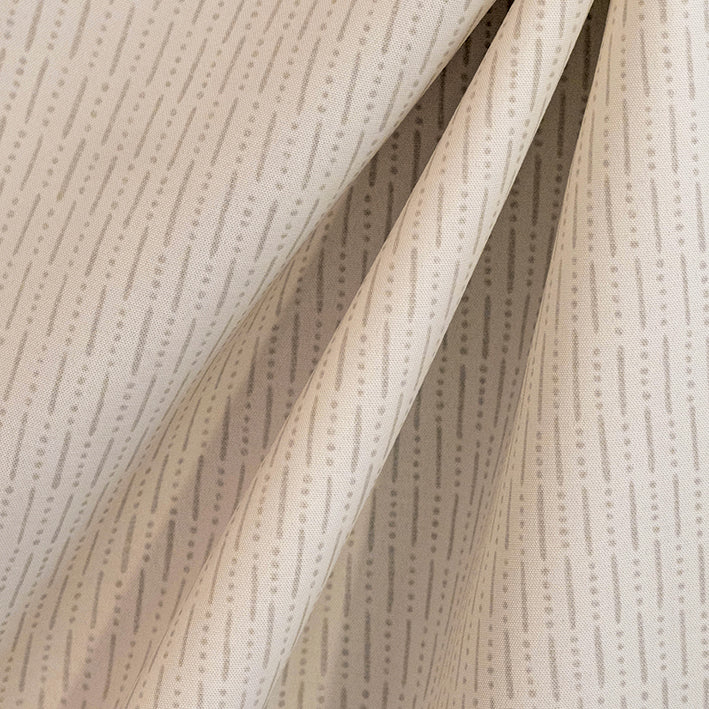 This subtle sand coloured outdoor fabric features a pattern of repeating dots and dashes.