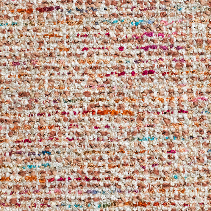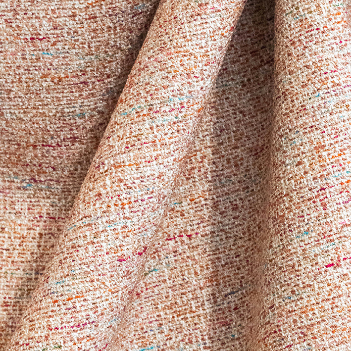 This fun and playful fabric feels like an endless party with it's shell pink base then dotted with pinks, blue and orange. Perfect for cushions, heavy curtaining and everyday upholstery.
