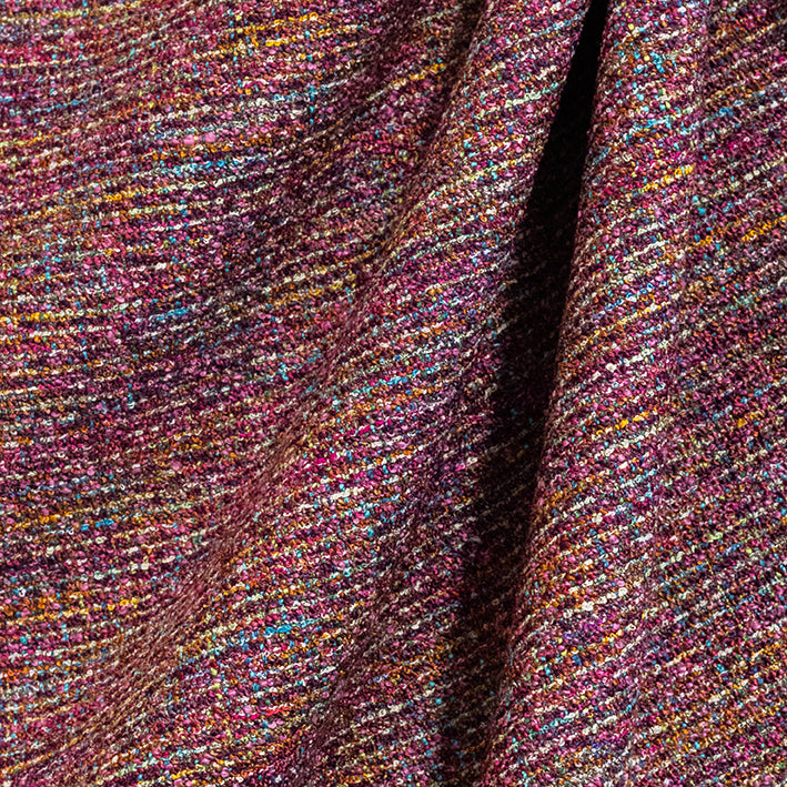 This fun and festive collection of colours looks like someone let off a couple of party poppers! With interweaving pops of orange, blue, green and yellow over a predominantly purple base - this fabric is sure to brighten up any room. Perfect for cushions, heavy curtaining and everyday upholstery.