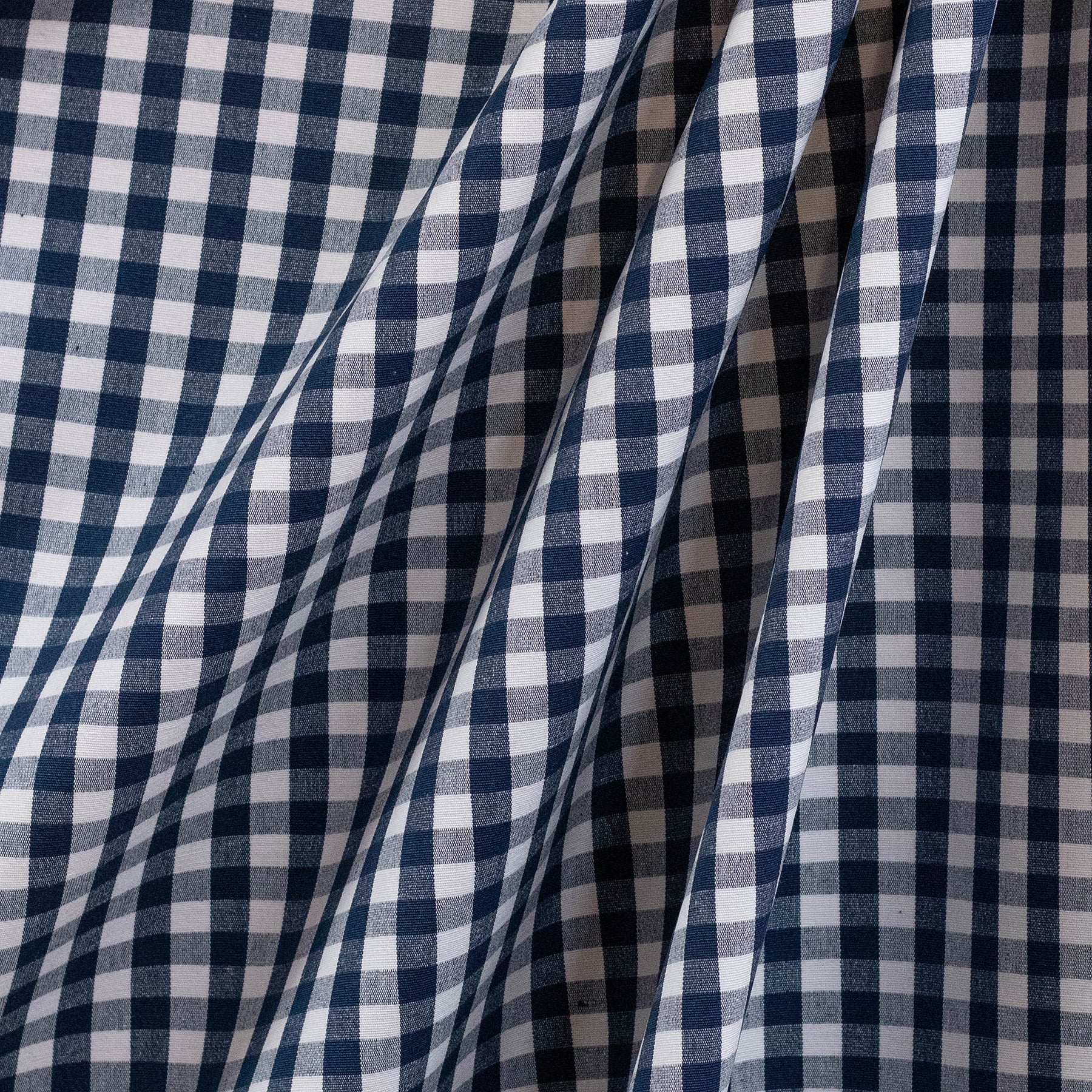 A classic, heavy woven gingham in navy. 100% cotton base, and perfect for upholstery, cushions, curtains and blinds.