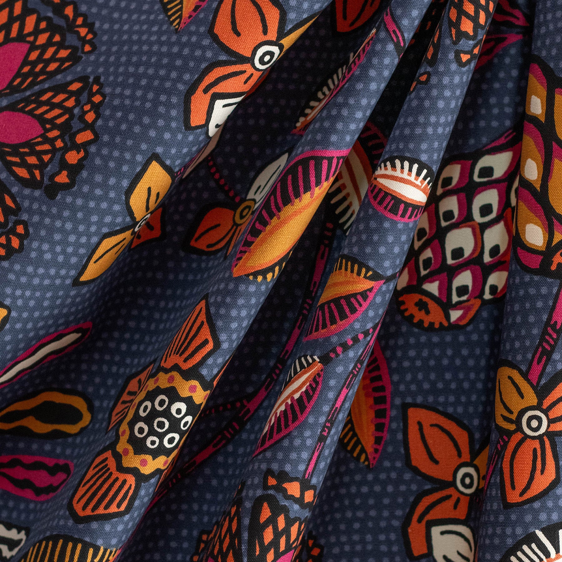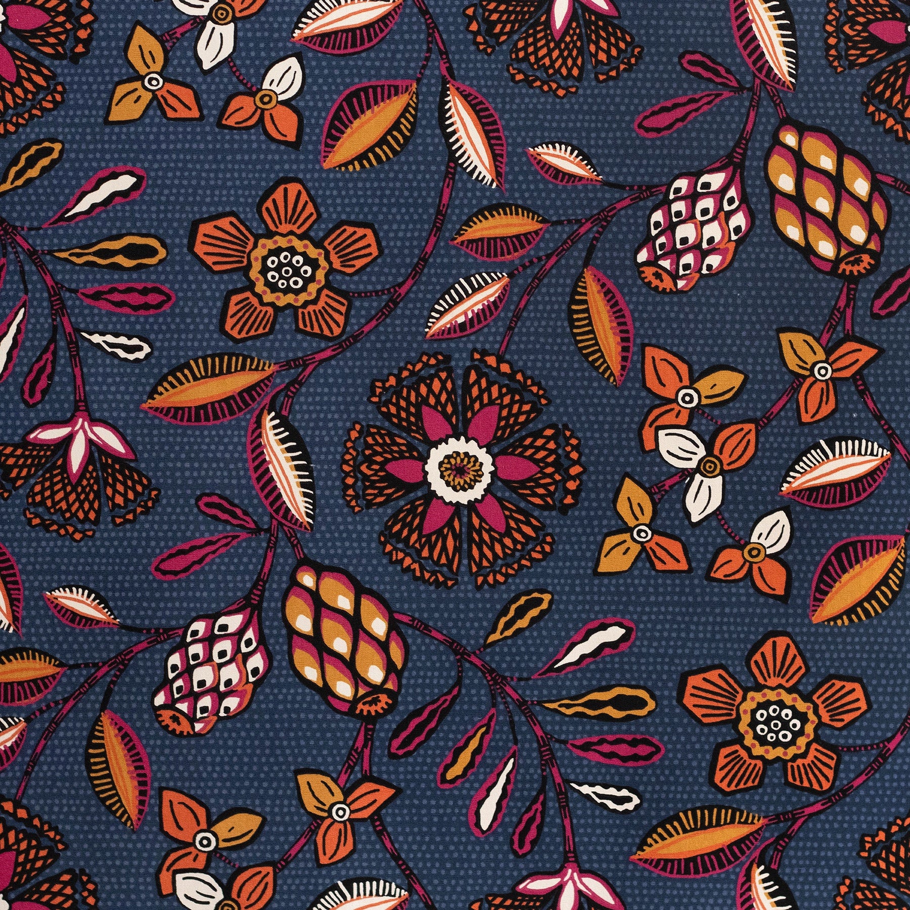 Folk-style flowers and branches come to life in pops of pink and orange in this fun floral print.