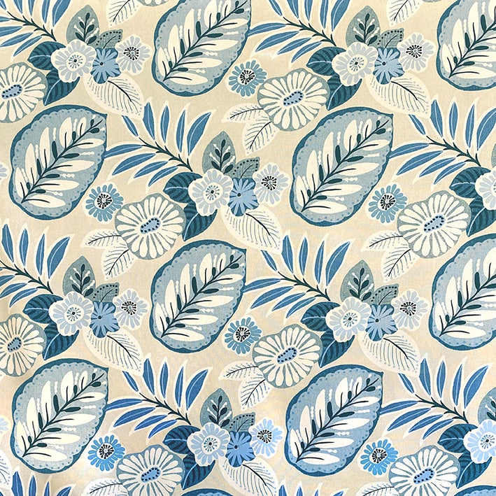 Astrantia Winter is the perfect fabric to liven up your space. Bring a little tropical inside with this beautiful large-scale floral design with a beige background with a fantastic blue print. This linen rayon cloth has a fantastic drape and texture which would be an amazing choice for curtaining, cushions, and light to medium use upholstery.