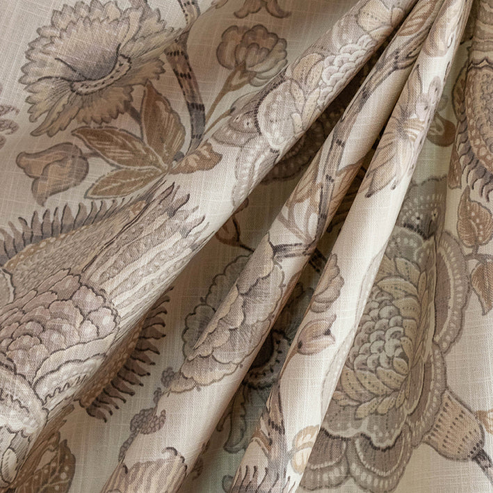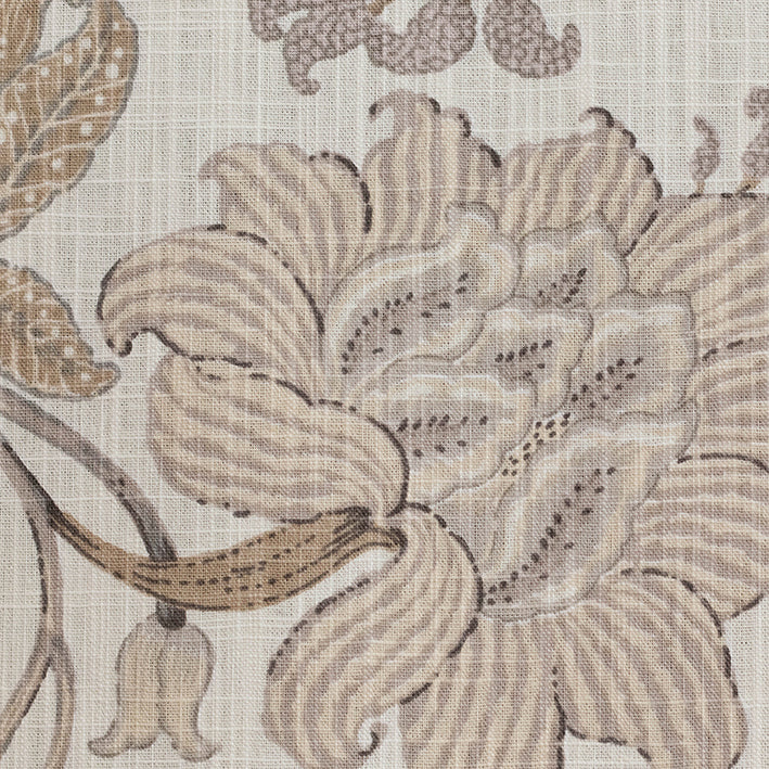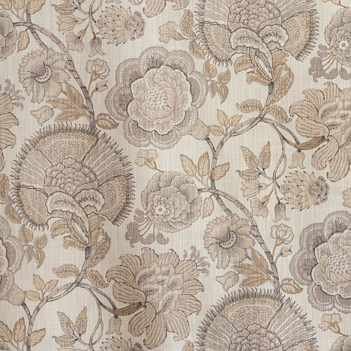 Halycon Days is a beige, taupe and cream vintage-style floral print featuring faded bohemian blooms.