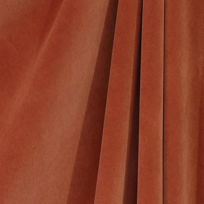 A stunning rust orange velvet! This super-soft commercial velvet is fantastic for everyday upholstery, cushions, and even eye-catching curtains,