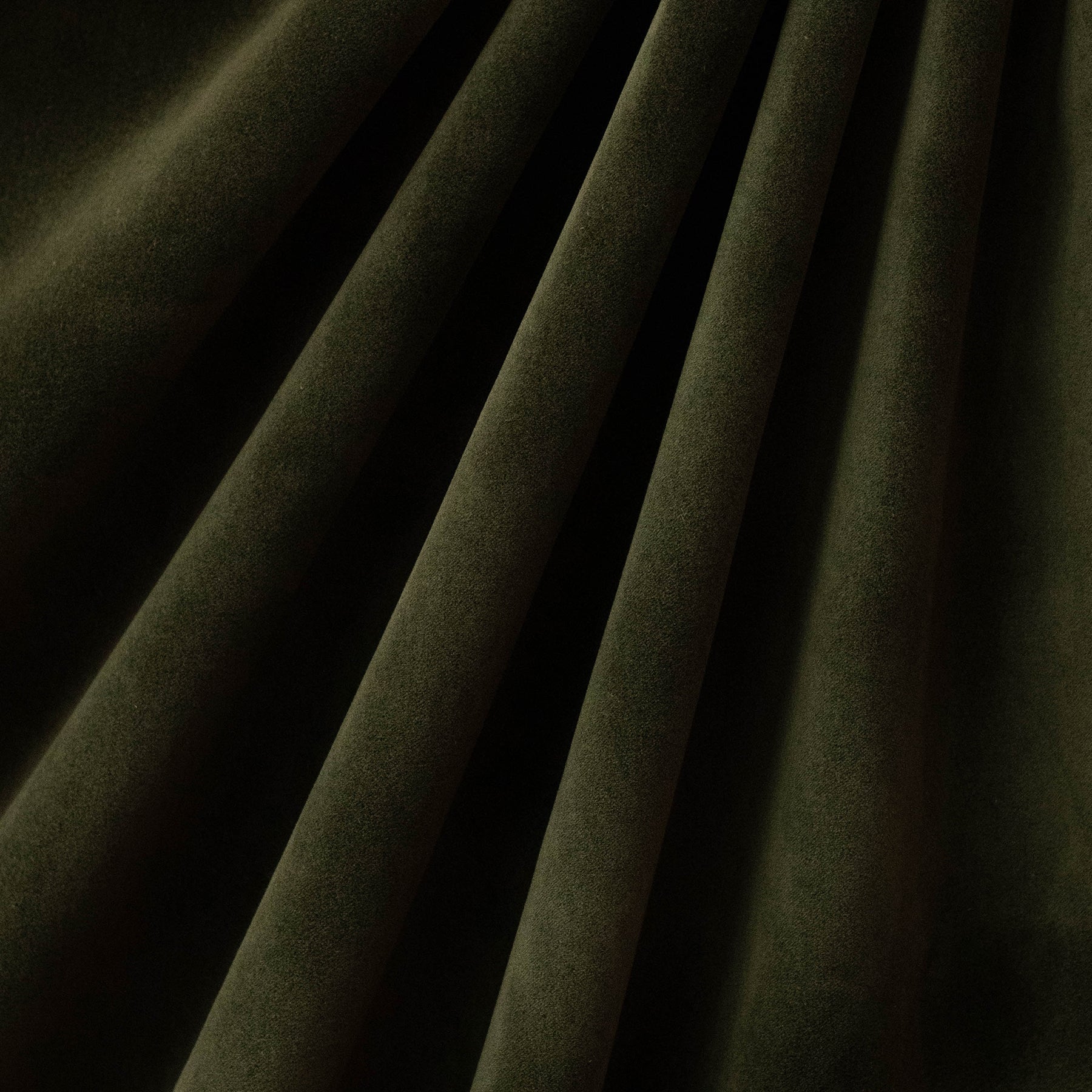 A stunning weight velvet in a deep olive green colour! This commercial grade,  polyester/cotton pile velvet is sturdy enough for everyday upholstery and luxurious for velvet curtains and cushions.