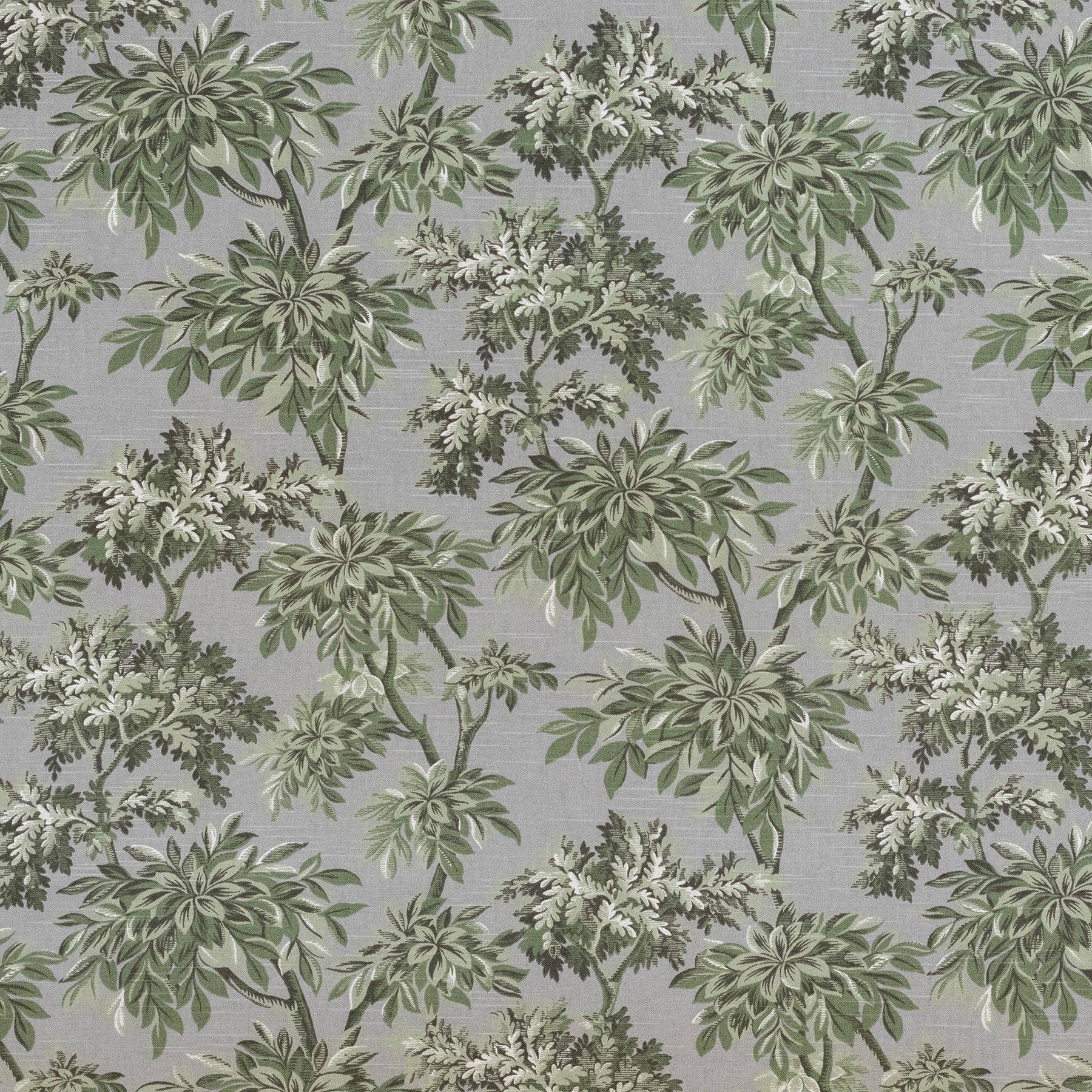 Luscious fresh green forest branches adorn a dove-grey background in this botanical print. Wonderful for everyday upholstery, occasional upholstery, curtaining and cushions.