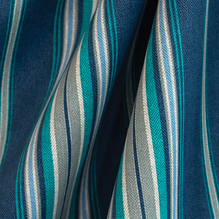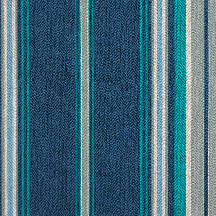 Travel to another planet with this galactic stripe of navy, grey, cream and turquoise. This fabric is water-resistant and is the perfect choice to liven up your outdoor, or indoor, entertaining space, perfect for the patio, poolside, and other home furnishings.