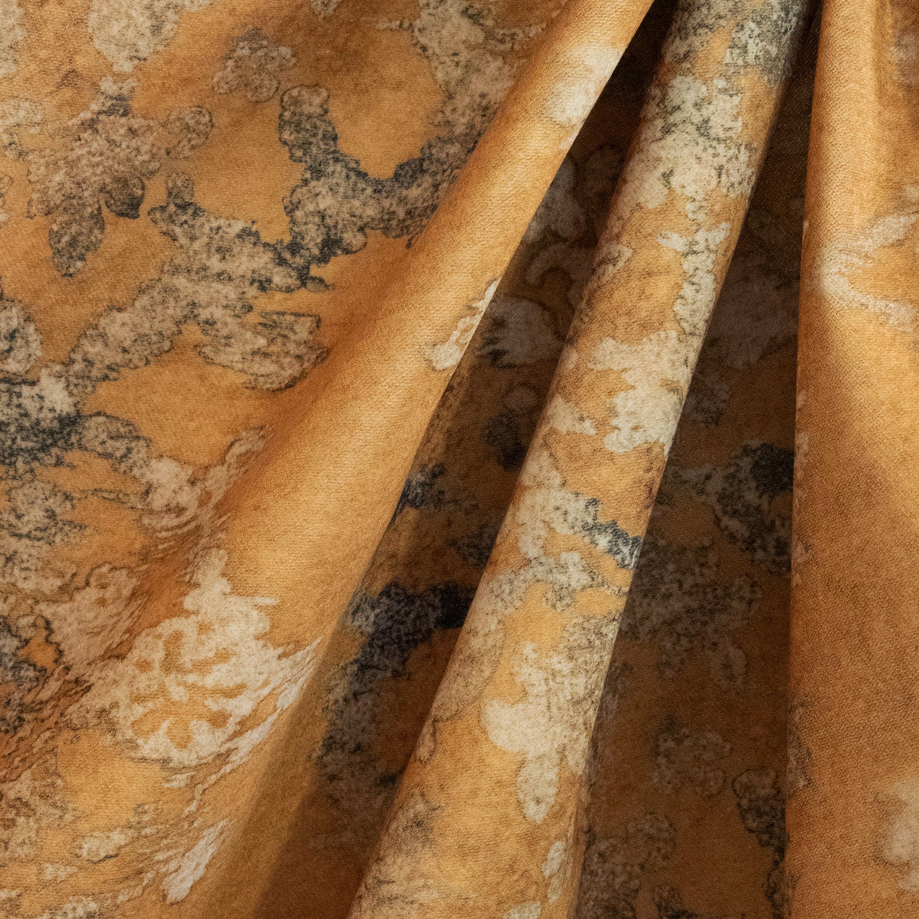Porto Velvet Karma is a beautiful mustard velvet with a charcoal printed design! This amazing, commercial-grade velvet is gorgeously soft and sturdy at the same time. Ideal for everyday upholstery, cushions, and heavy curtains.