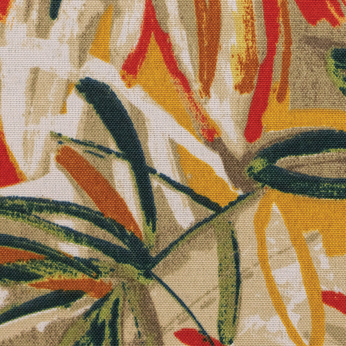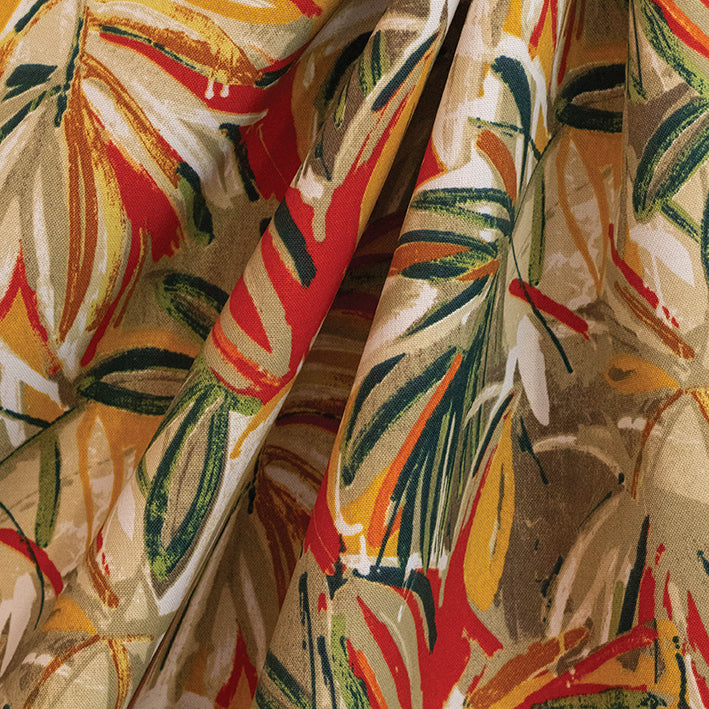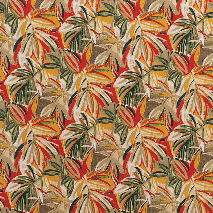 Bursting with colour and flair, Salsa features chilli red, mustard, taupe, green and white fronds overlapping each other. Fantastic for curtains, outdoor cushions and soft furnishings.
