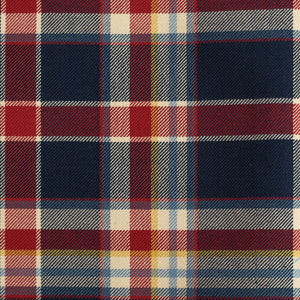 Toot toot, all aboard, we're going on an adventure with this fabric! Cute stripes of sky blue, buttercup yellow, strawberry red and navy overlap an off-white background with this playful tartan. A wonderful choice for everyday and occasional upholstery, cushions and curtaining.