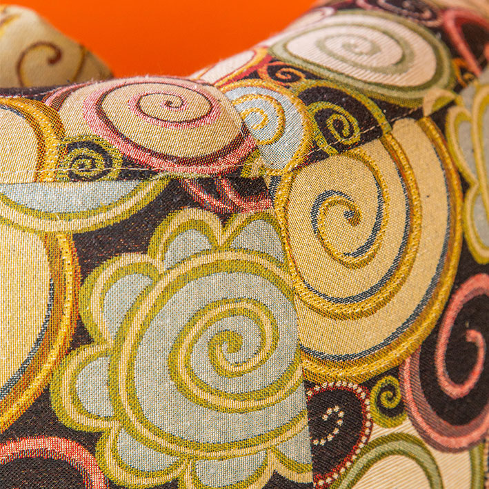 Cute, round custom made chair with swivel base by Profile Furniture. The perfect statement for your space. Its small size makes it perfect for smaller homes and apartments.