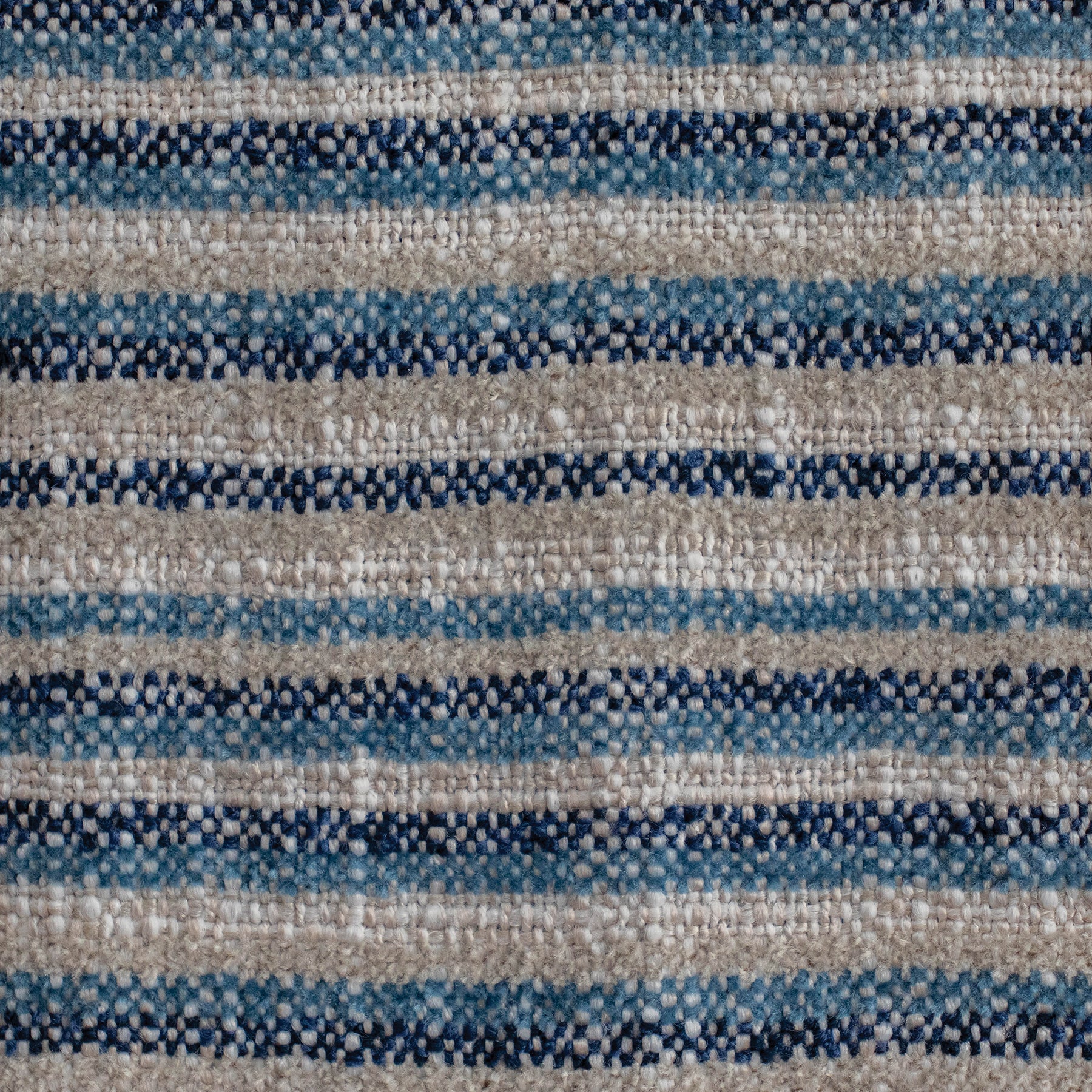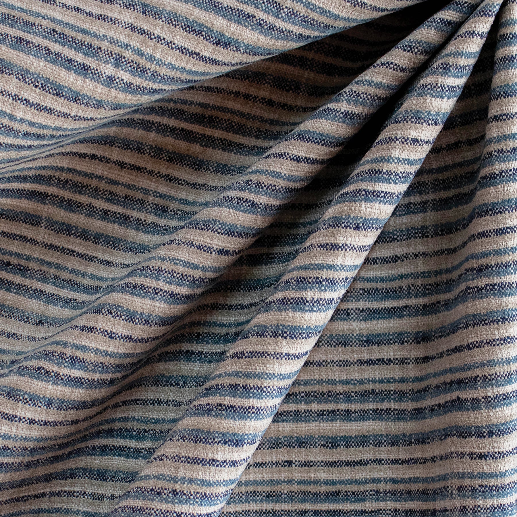 Woven stripes in soft grey, light blue, and deep blue create a fun yet classic visual interest. Its timeless colour palette works beautifully in both contemporary and traditional interiors. Durable and practical, this fabric is suitable for everyday upholstery, cushions, and curtaining. Offering a stylish and resilient option for a variety of spaces.