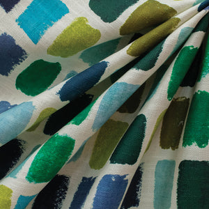 Field Studies features a crisp white base adorned with painterly rectangles in varying shades of green and blue. Made from a linen–cotton blend and suitable for occasional upholstery, this fabric adds subtle texture, colour, and modern artistry to cushions or curtains. Perfect for spaces that embrace a fresh, natural palette with an understated, textural charm.