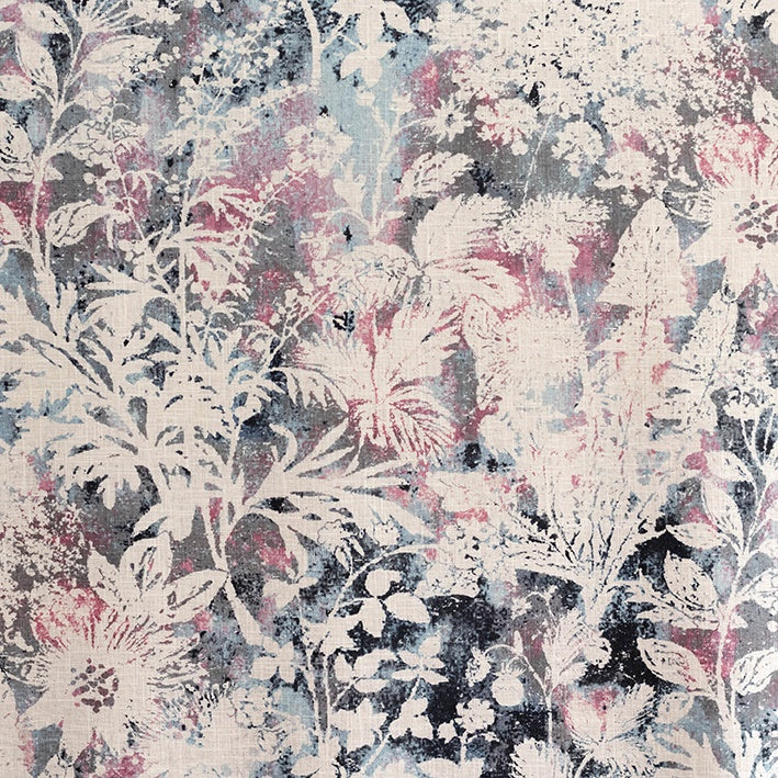 Where sun meets moon, this striking floral blends sun-bleached floral outlines over a pale purple and blue watercolour background.