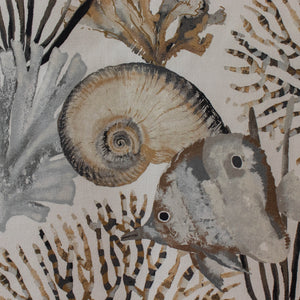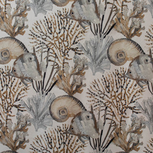 Seabed Dune brings the beauty of the ocean floor into your home. Featuring a large-scale print of fish, coral, and shells in a harmonious mix of warm and cool brown tones against a cream/off-white background. Made from 100% cotton and suitable for everyday upholstery, cushions, or curtains. Seabed Dune is ideal for creating a relaxed atmosphere with a subtle, sophisticated palette.