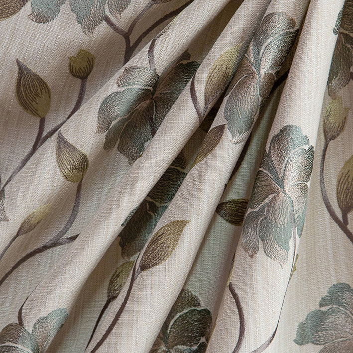 This wonderful art deco embroidered floral and stem design is a fantastic choice for your next curtains, blinds, cushions and occasional upholstery project.