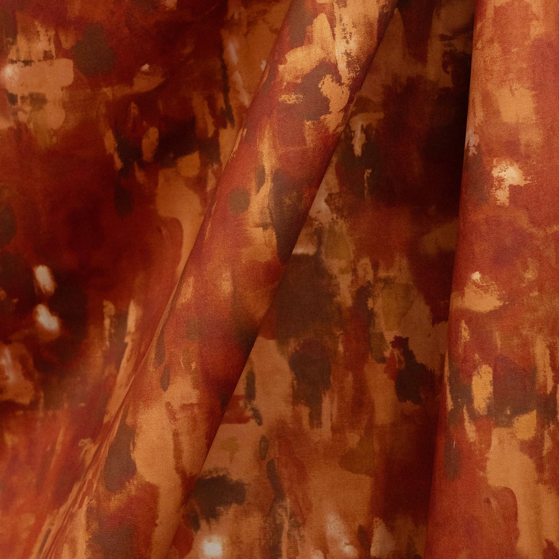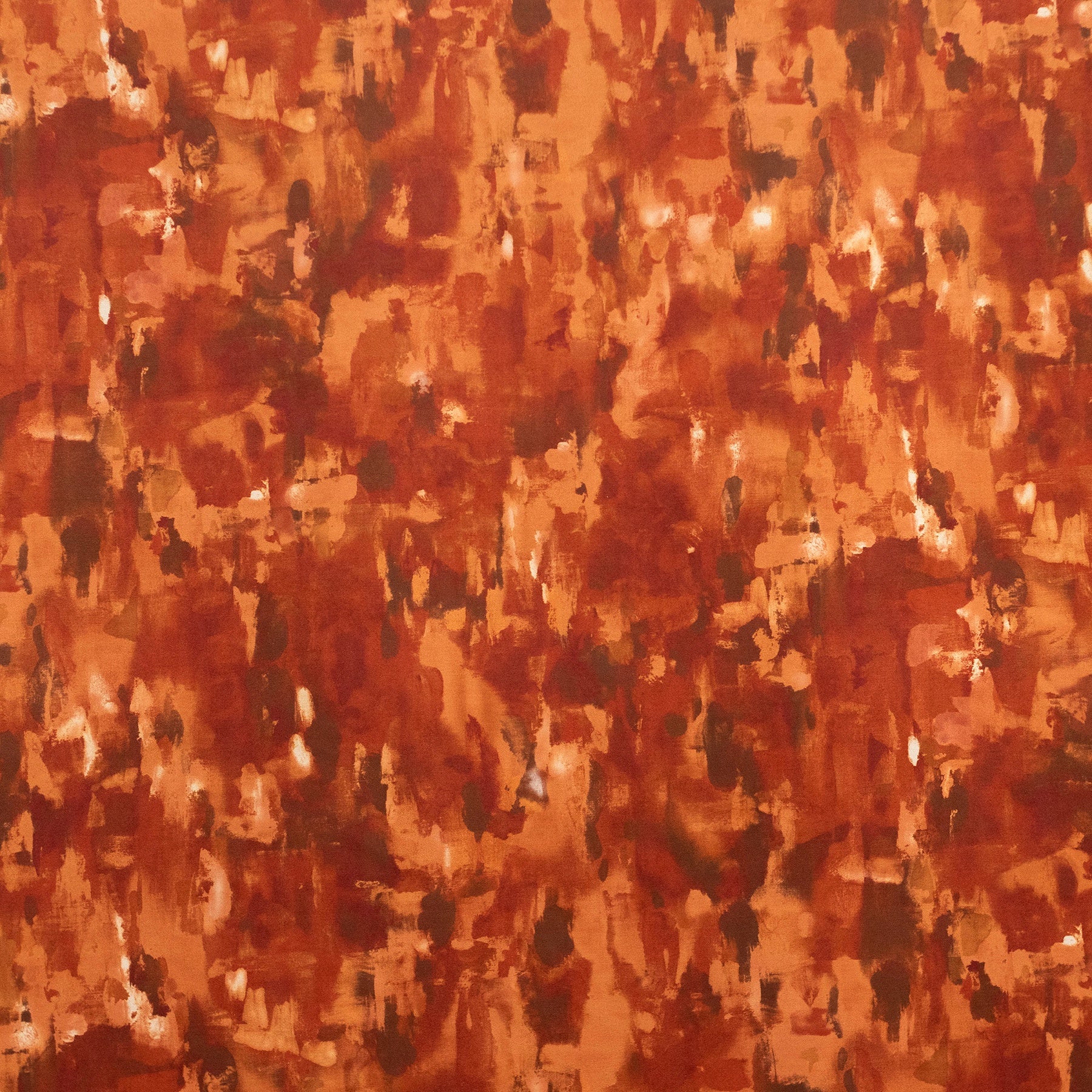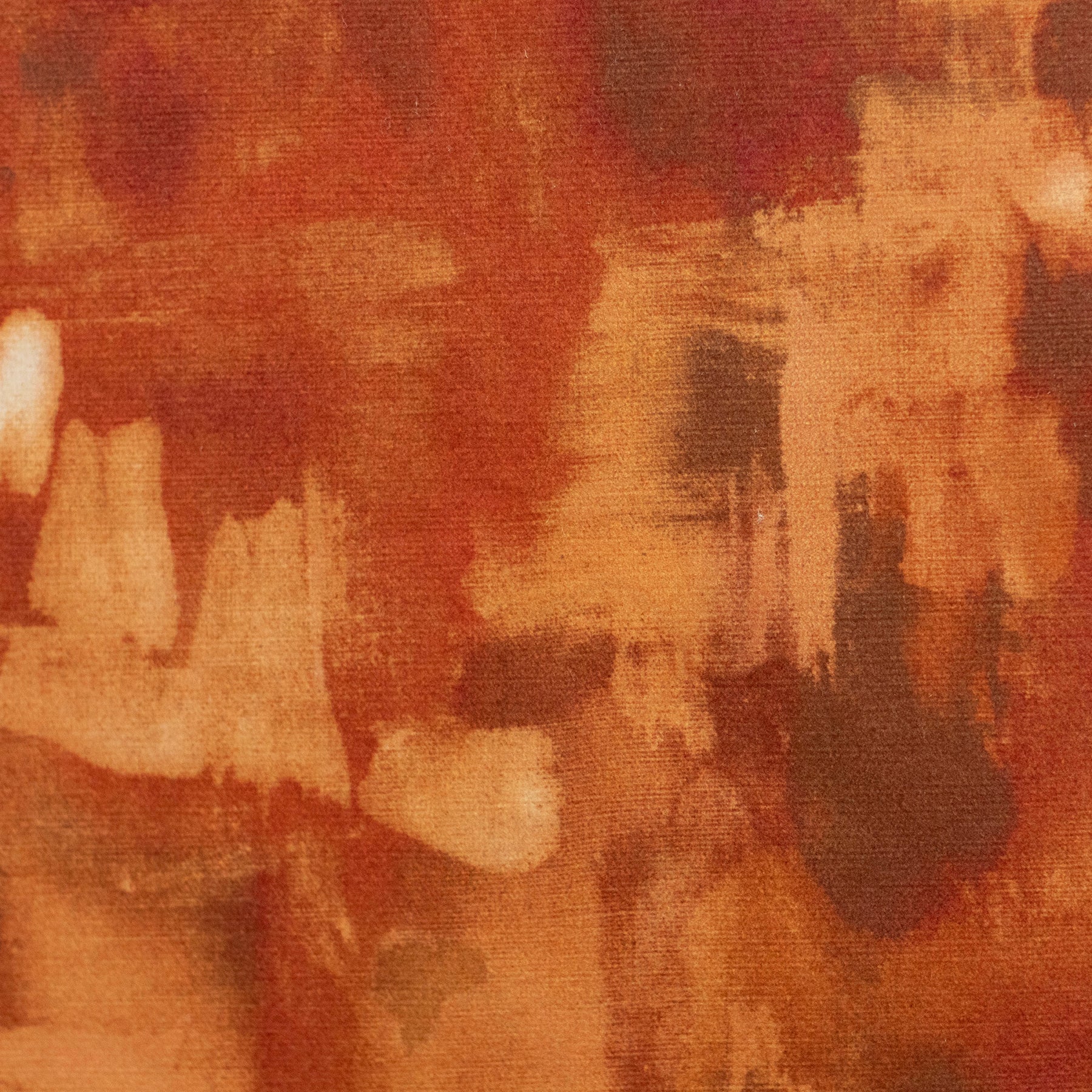 Warm and inviting, this soft and silky velvet has painterly brushstrokes of brick red, orange and brown creating the ambience of a warm campfire glow.
