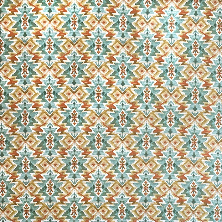 De La Luna is a beautiful and colourful Turkish style print in soft teals, oranges and greens. This medium-weight fabric is perfect for adding stunning pattern and colour to your home through statement curtains, blinds, cushions and occasional upholstery!
