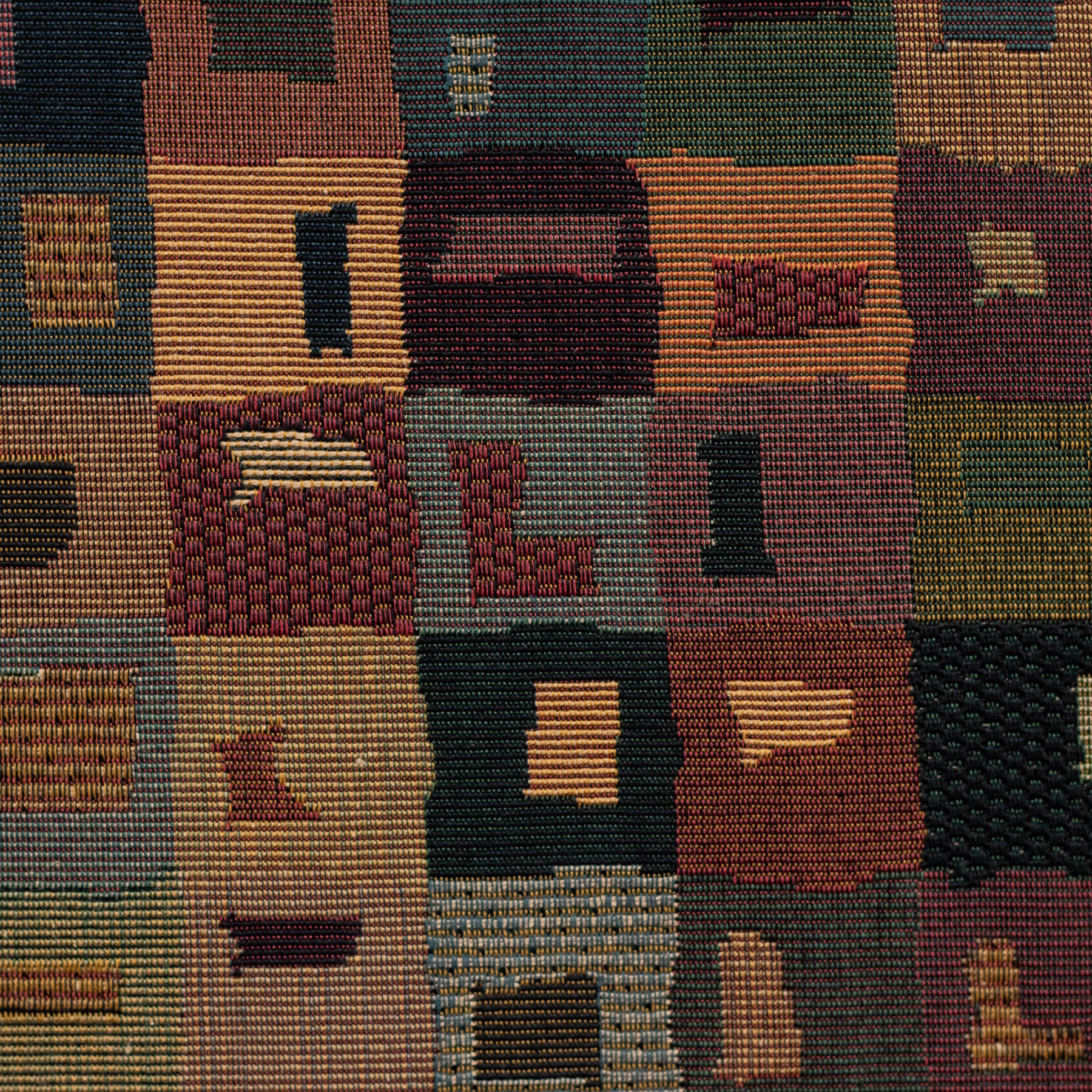 Eclectic and colourful squares make up this playful jacquard, making it look like a little city of houses.