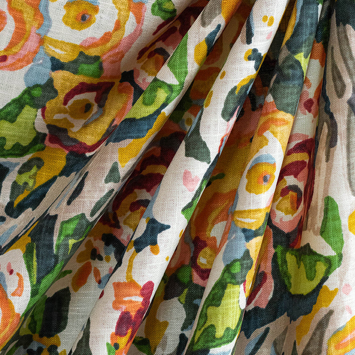 Floraverse Fabric brings a dreamy, painterly look to soft furnishings with its scattered inkblot-style blooms on a crisp white basecloth. This premium furnishing fabric is both playful and serene, making it perfect for curtaining, blinds, cushions, and occasional upholstery. The multicolour print works beautifully in light, airy interiors where colour can be subtle yet expressive.