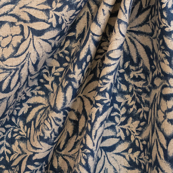 Indigo Grove makes for a striking option if you're looking for something with a regal yet understated feel. Intricate swooping cream-coloured leaves swirl over a navy-blue background. Perfect for occasional and everyday use upholstery, cushions and curtaining.