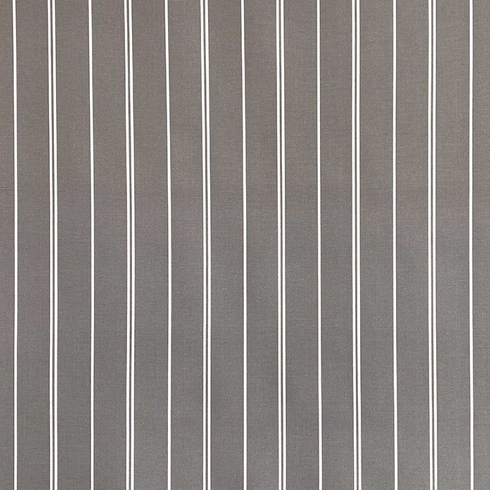Open Road is a classic neutral grey indoor/outdoor fabric with a thin white stripes, screen printed on polyester. It holds up to 500 hours of sunlight exposure, resists stains, and is water-resistant. This fabric is the perfect choice to add a bit of pattern to your outdoor, or indoor, entertaining space while keeping it simple and classic. Perfect for the patio, poolside, everyday upholstery, and other home furnishings.