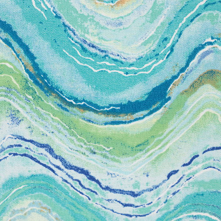 Soft hues of blue, clay, white and green overlap like waves on a riverbank in this serene outdoor print. Riverside is water-resistant and the perfect choice to liven up your outdoor, or indoor, entertaining space, perfect for the patio, poolside, and other home furnishings.