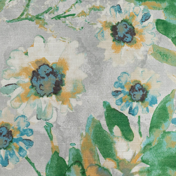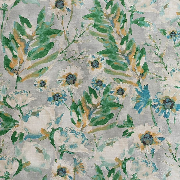 Soft dove grey, green and blue roses, daisies make up this gentle watercolour print.