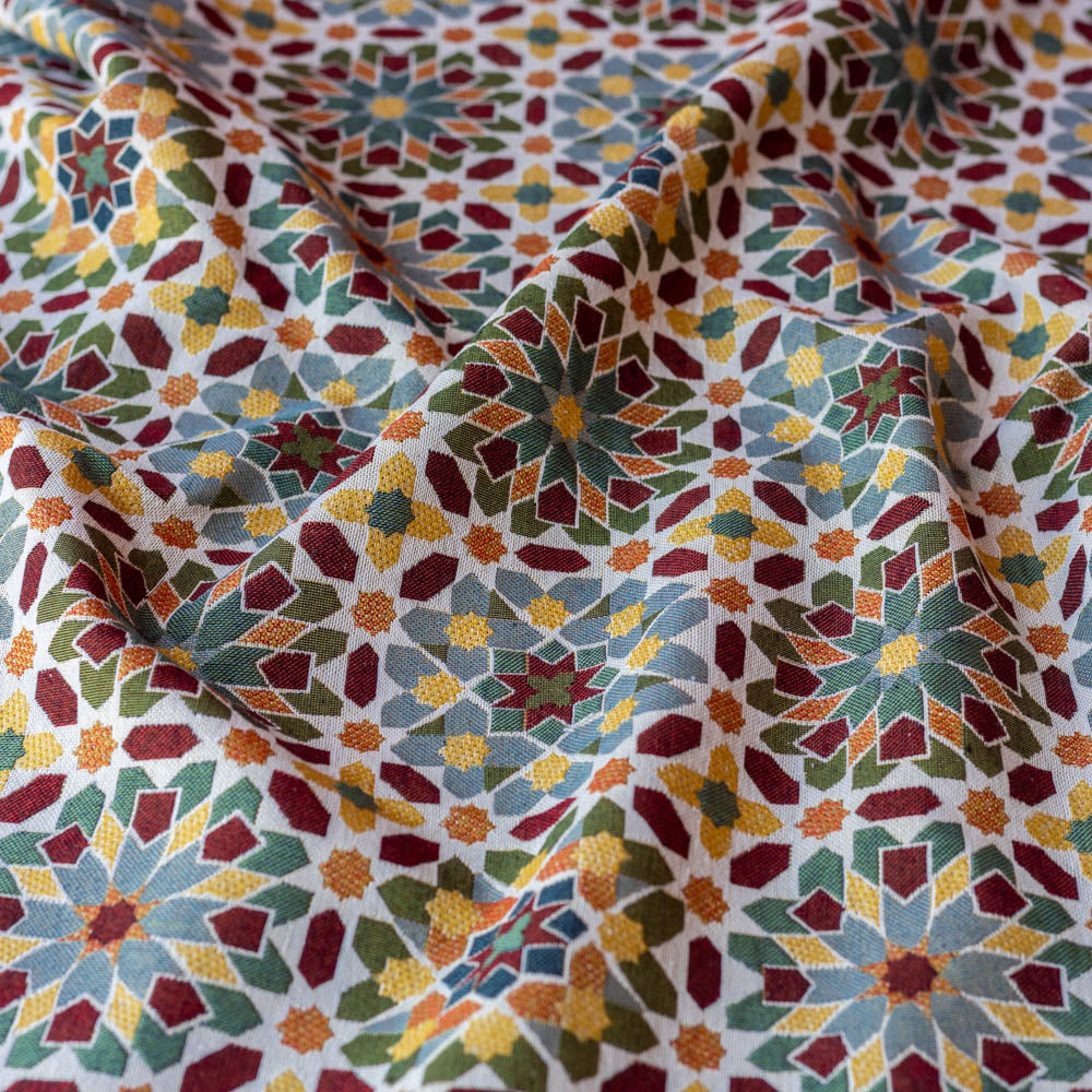 Smalti is an incredible multi-coloured woven jacquard upholstery fabric in a fantastic mosaic-style geometric pattern. In stunning soft colours, with contrasting darker tones this fabric is the perfect modern choice to add some colour and pattern to your interior. Perfect for everyday use upholstery, cushions and heavy curtains.