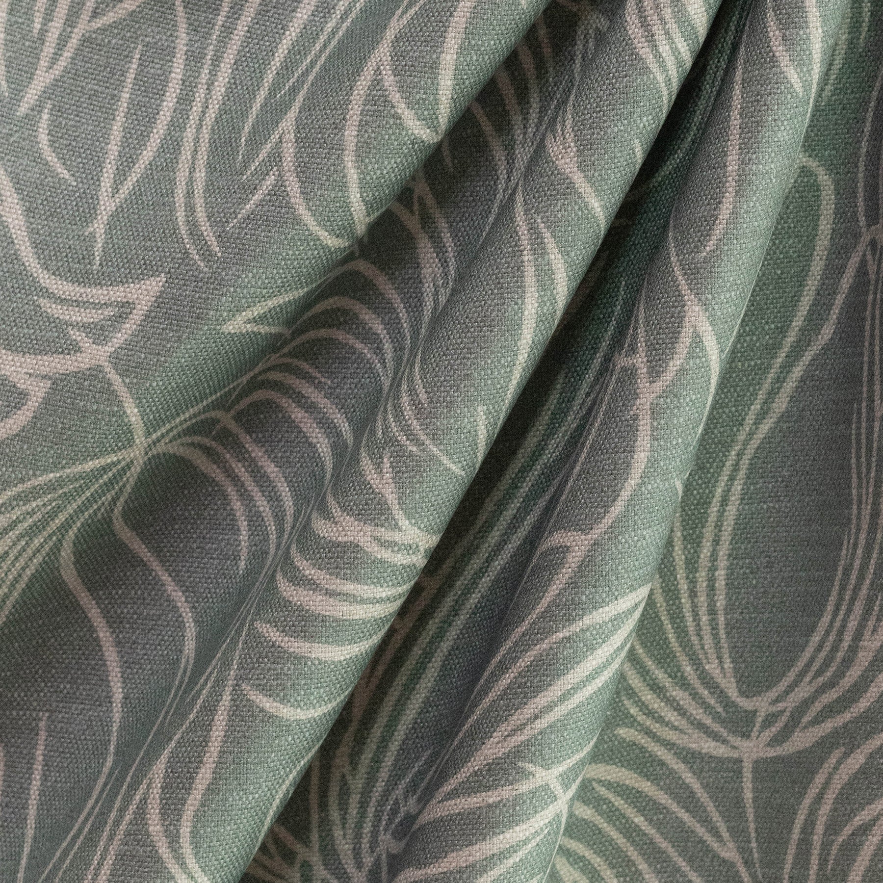 This duck egg green and off-white print has sweeping loosely drawn flowers draped throughout.