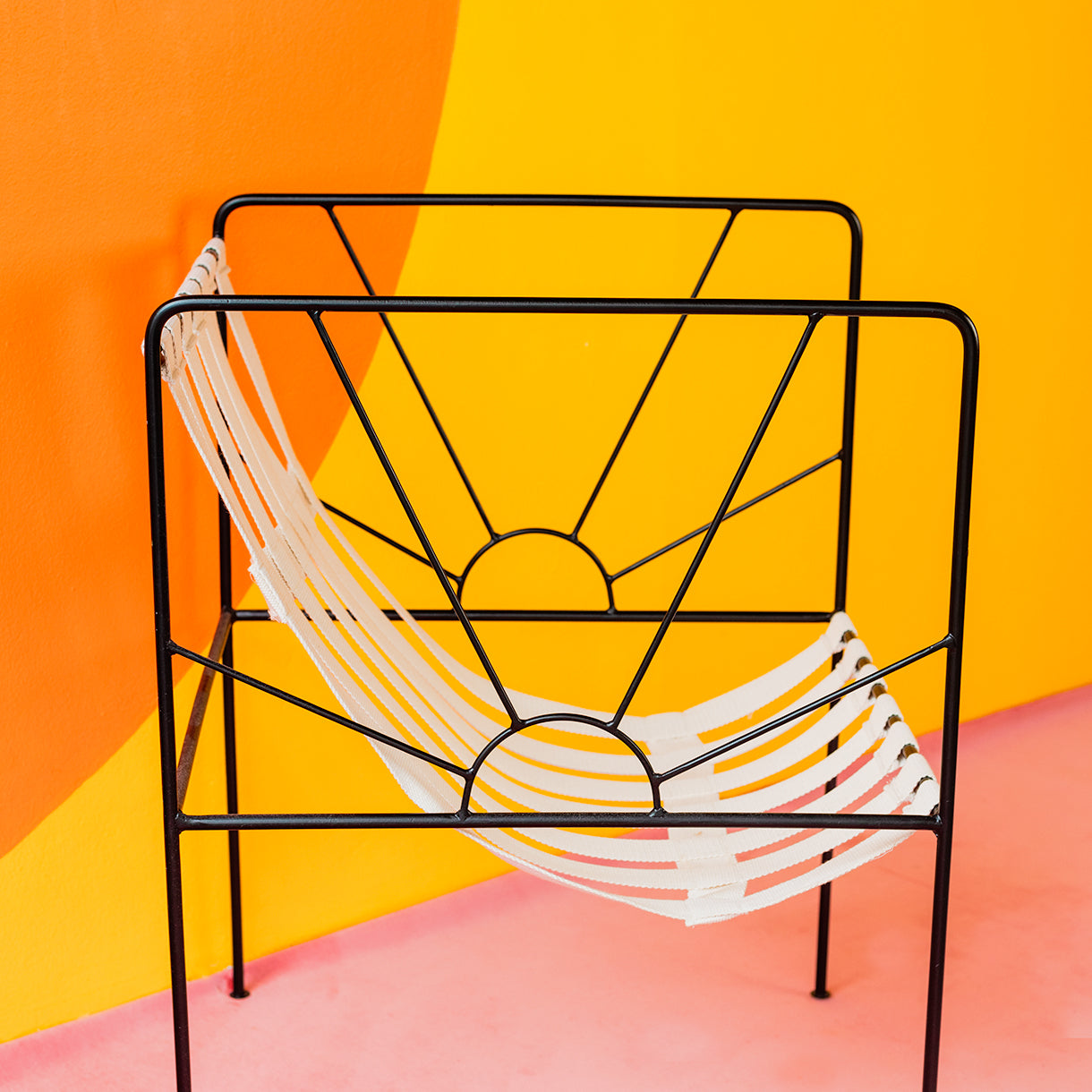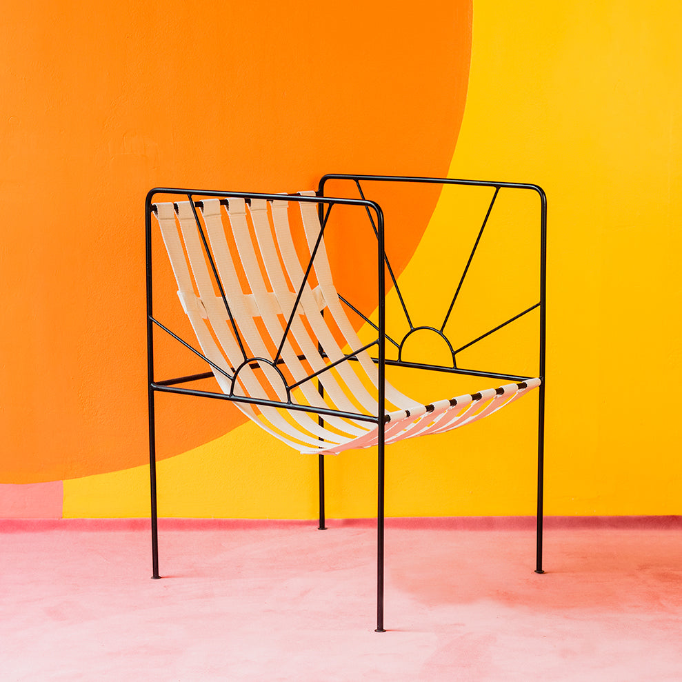 These stunning steel chairs are locally made and the perfect mixture of modern yet retro features a sunrise design. This chair is painted with a 2k industrial polyurethane in a crisp, opaque black that's sleek enough to suit any decor in your home.