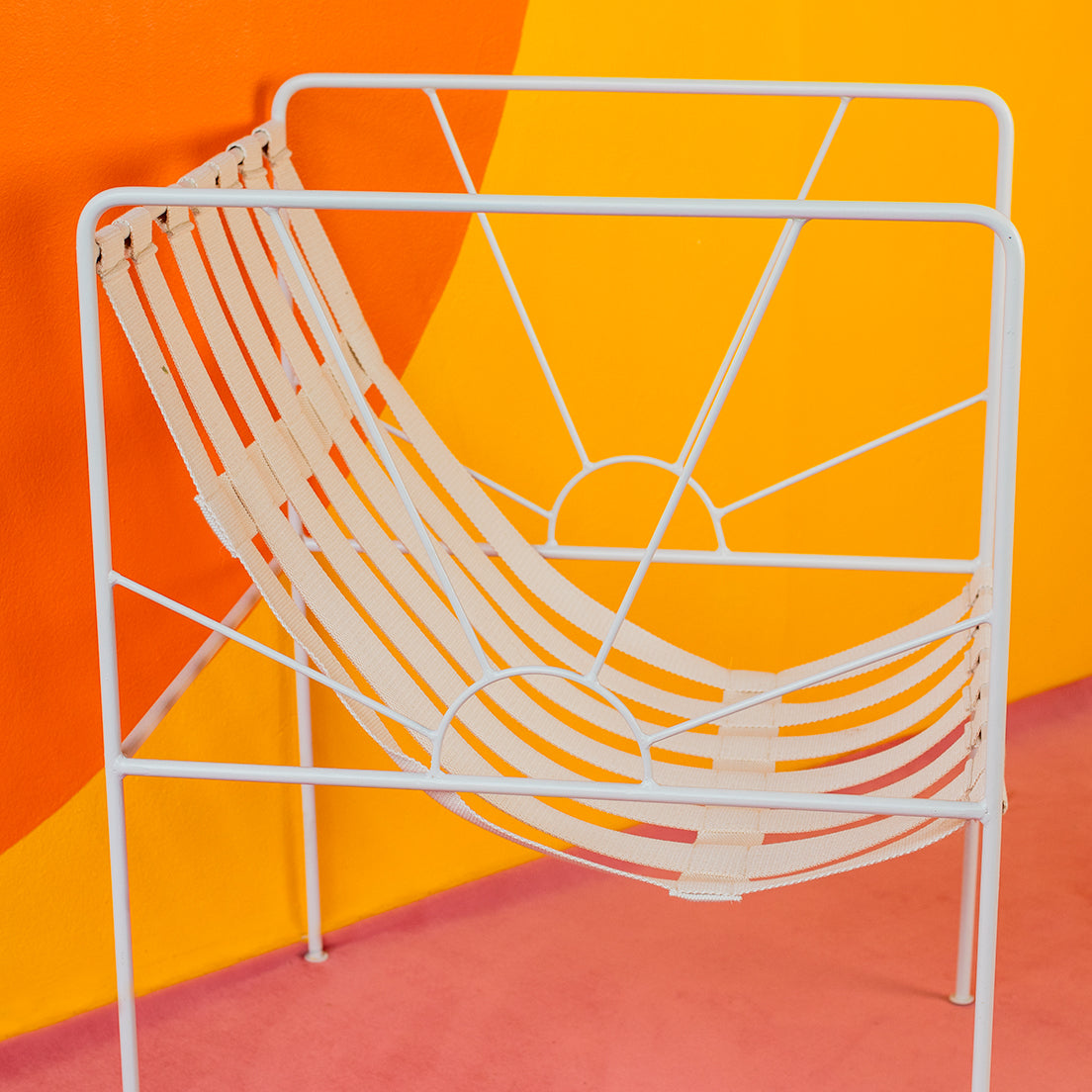 These stunning steel chairs are locally made and the perfect mixture of modern yet retro features a sunrise design. This chair is painted with a 2k industrial polyurethane in a gorgeous baby/ sky blue that's colourful yet pastel enough to suit any decor in your home.