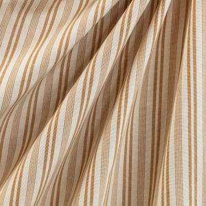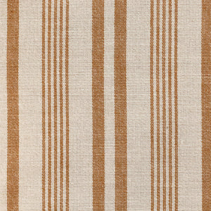 Classic, Traditional style stripe in caramel and off white on a 100% cotton base. This fabric is suitable for everyday upholstery, cushions, heavy curtains and blinds.