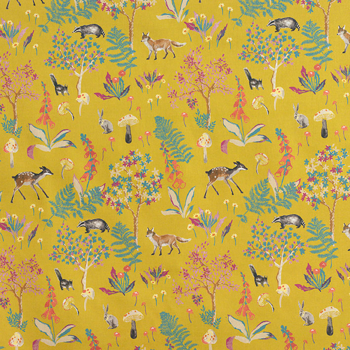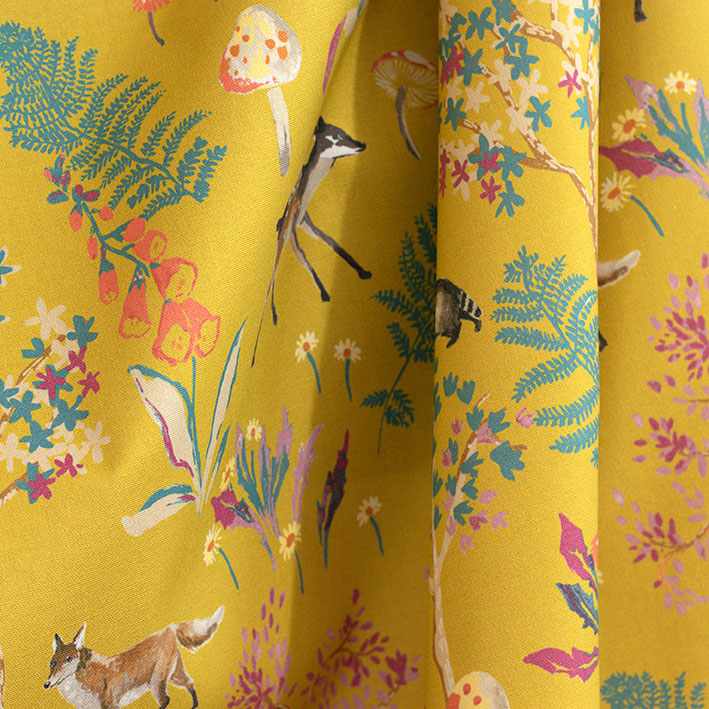 This cute woodland print is the perfect addition to your interiors! Printed in a stunning mustard colourway, it is perfect for adding a pop of colour to your space. Bambi is perfect for stunning cushions, blinds, curtains and would work well for medium domestic use upholstery.