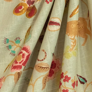 Jasmine Duck Egg is a fun and bold collage style print on a stunning soft duck egg linen blend base cloth. This fabric is the perfect option for statement eye-catching curtaining and blinds, light use upholstery or use as a small pop of colour and pattern on cushions.