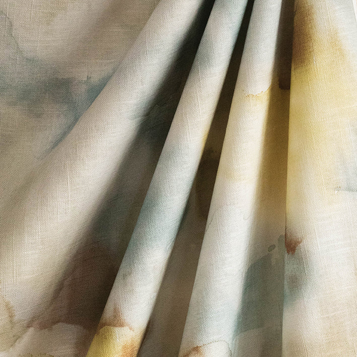 Soft and fluid, Motueka Fabric is a watercolour-inspired furnishing fabric that brings artful motion to interiors. Printed on a beige-toned linen-viscose base, its flowing blue and brown tones blend easily with both contemporary and classic spaces. The large 91cm repeat makes it especially suitable for full-length curtaining, statement blinds, and occasional upholstery that calls for a touch of artistic flair. The fabric's smooth drape and durability make it a favourite for feature pieces that don't overwhelm. Buy online or shop in-store, with NZ wide delivery—and remember, free samples are available to help guide your selection. Motueka Fabric is understated yet expressive.