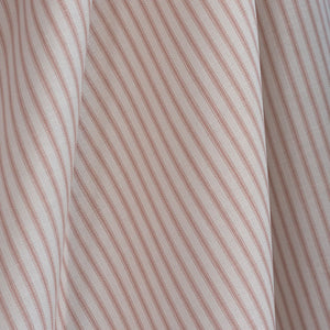Rosewater Cotton Ticking Fabric brings classic charm in a soft, muted pink stripe. Woven from 100% cotton, this premium furnishing fabric is a versatile choice for upholstery, curtaining, cushions, headboards, and more. Whether you’re designing a romantic cottage interior or adding a soft accent to a modern space, its timeless stripe pattern and durable weave make it a standout. Soft yet sturdy, it also suits lampshades and mattress toppers. Rosewater Cotton Ticking Fabric is available to buy online or shop in-store, and we offer free samples NZ wide to help you select the perfect look and feel for your home.