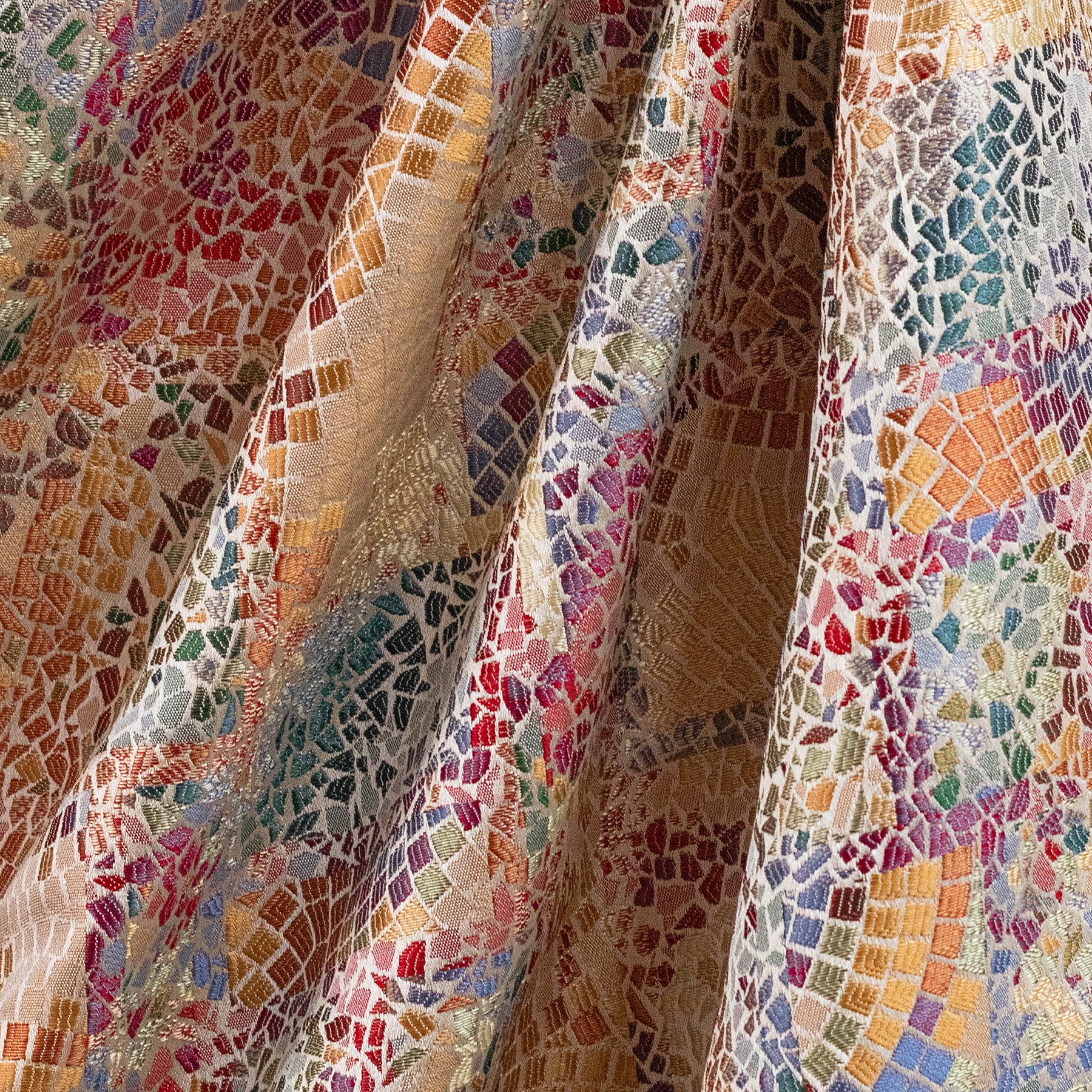 Iris Prism is a beautiful multicoloured woven jacquard fabric with an appearance that can be likened by the art of mosaics and stained glass, giving a sense of elegance and beauty. The bright multitude of colours makes this fabric a statement piece you will have to have in your home. Perfect for everyday use upholstery and cushions, but also great for heavy statement curtains, and coordinate brilliantly with some of our plain velvets and linens!