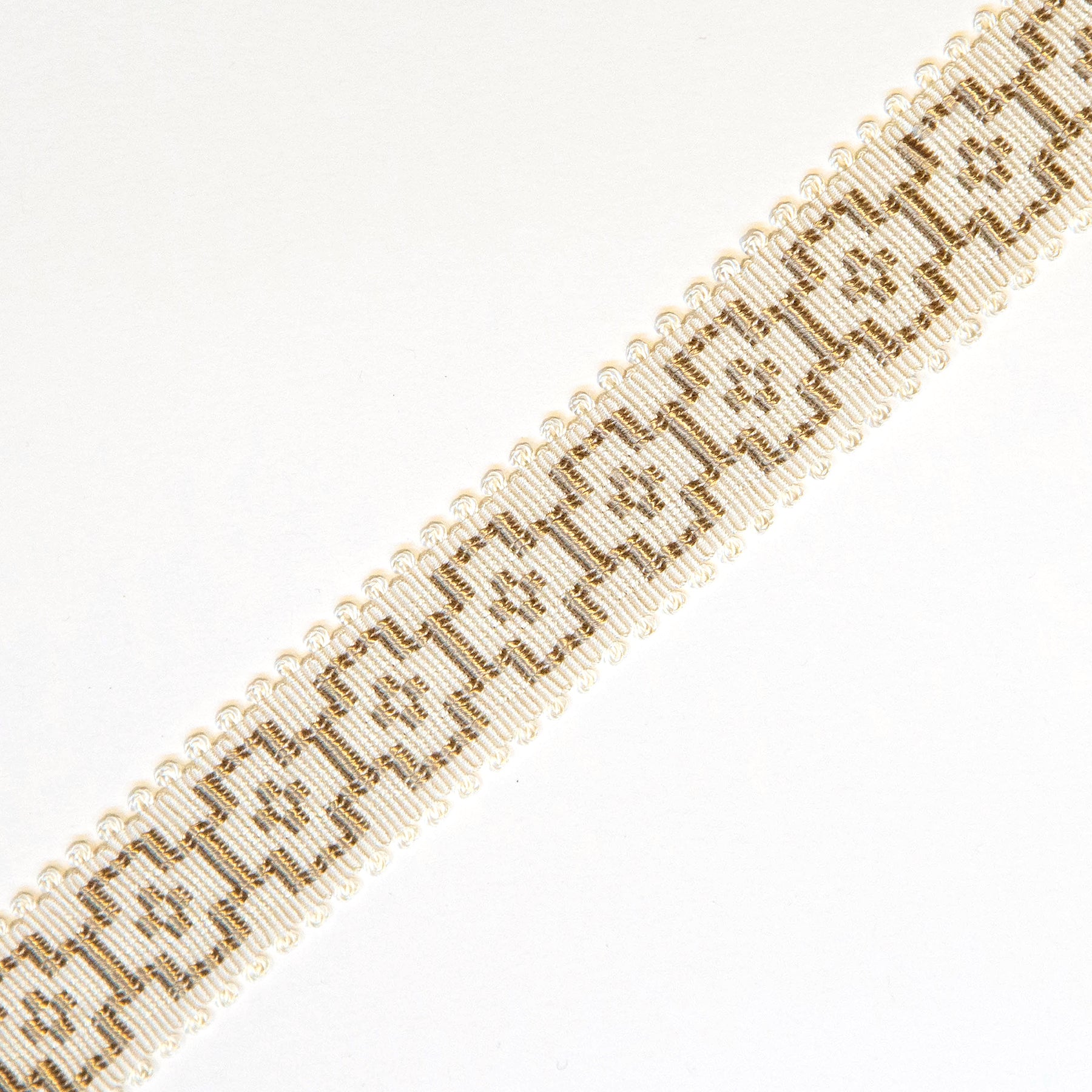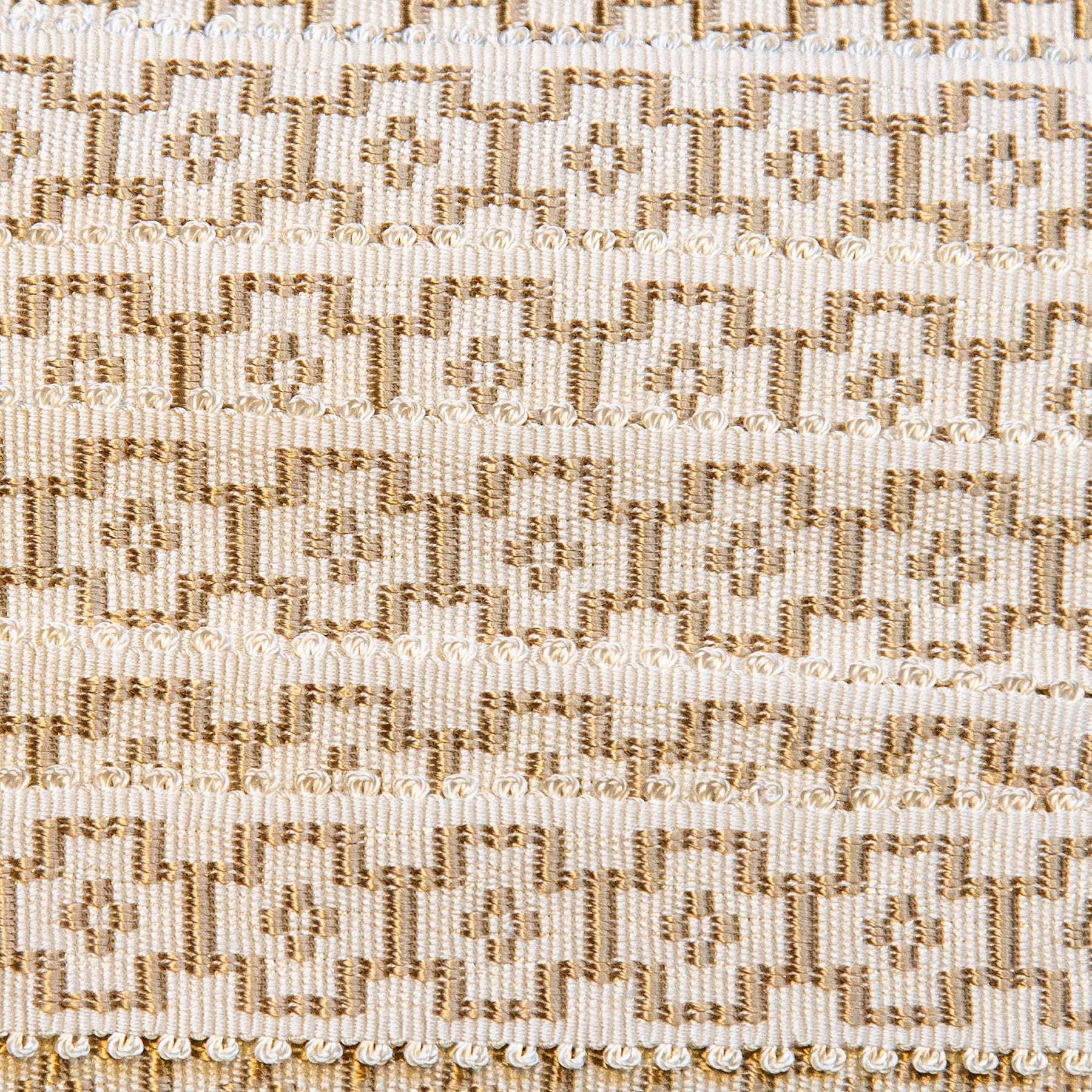 A pretty folk-style braided gimp in off-white with a vintage gold motif.