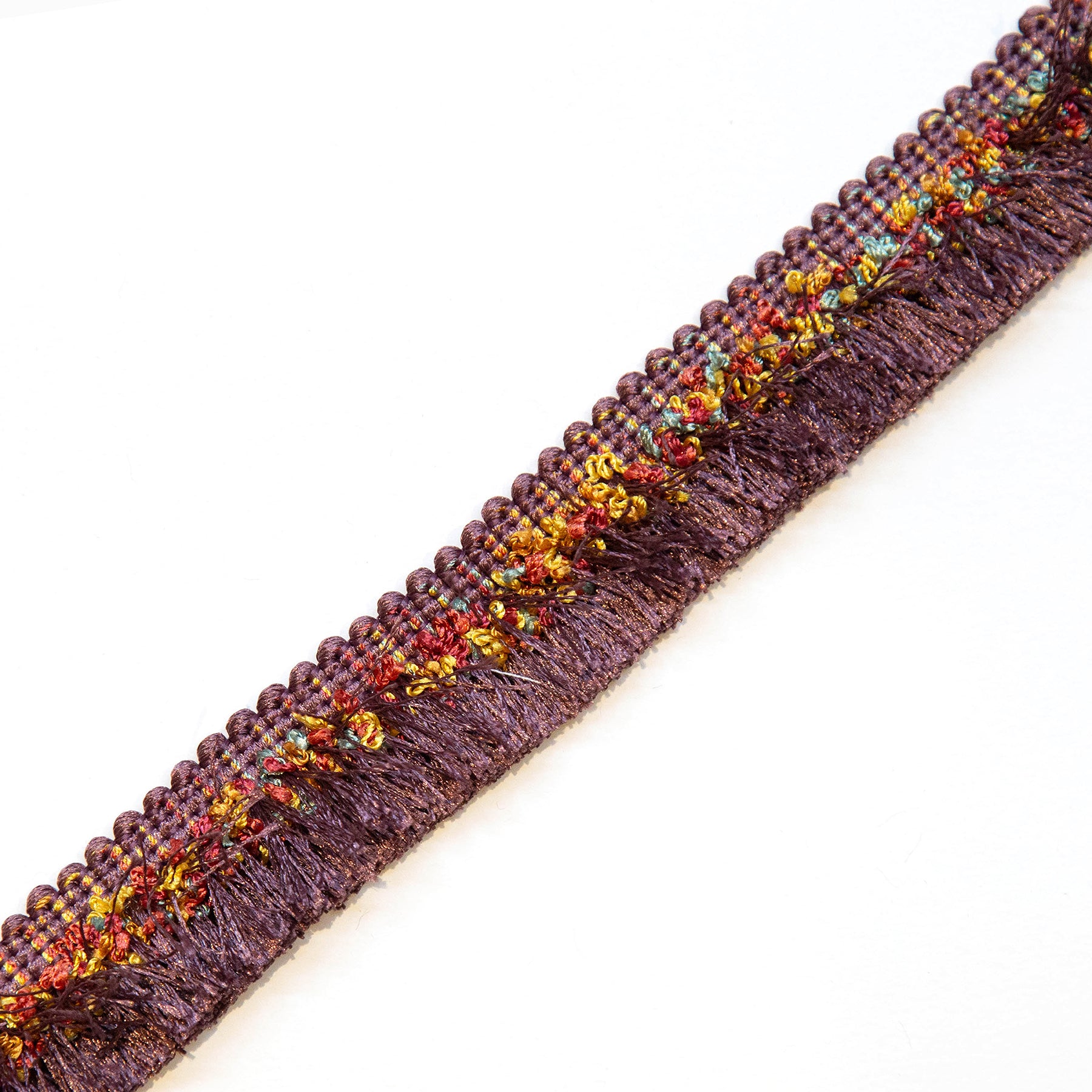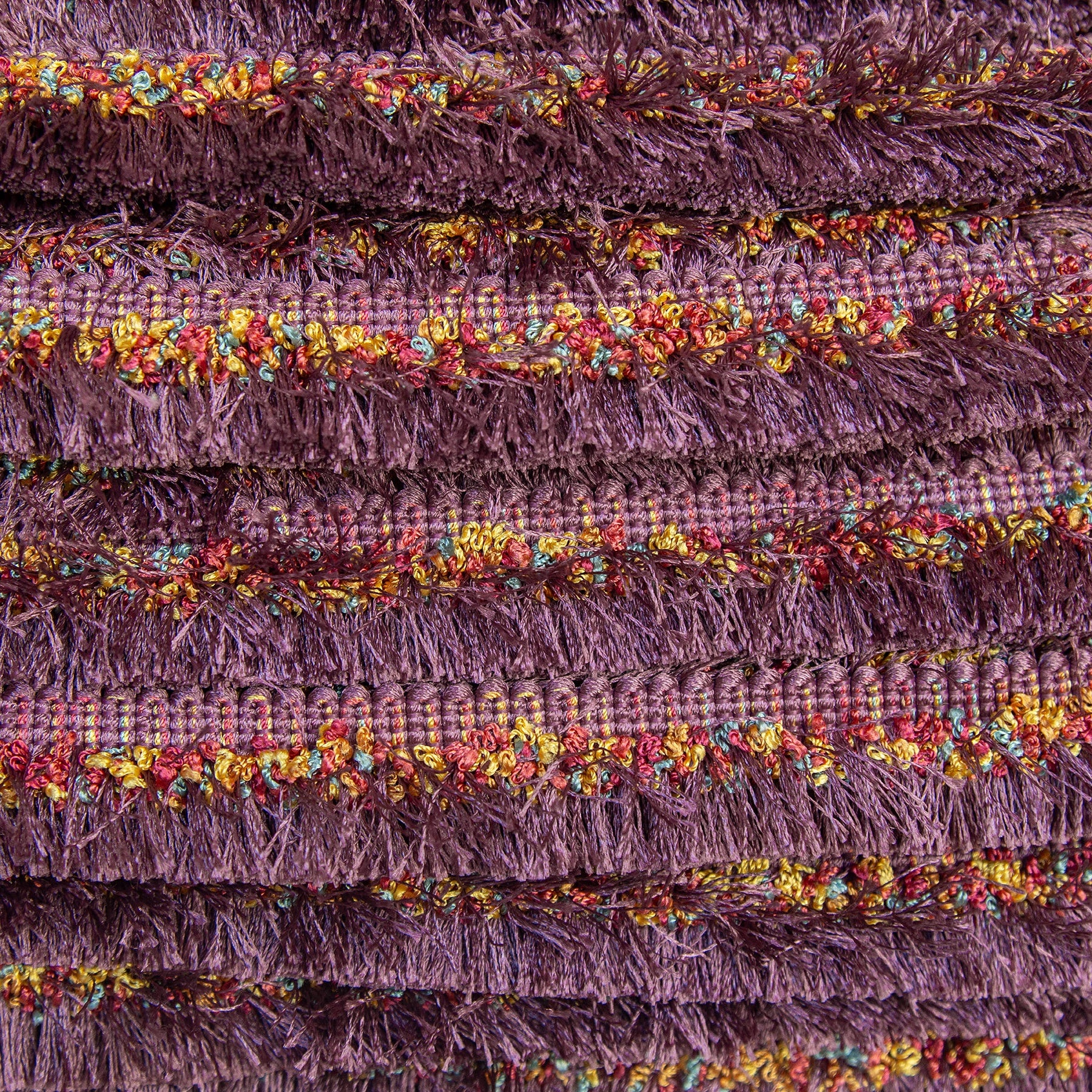 Beautiful brush fringe in a gorgeous mauve colour with raspberry pink, dark gold, turquoise and sunshine yellow roses.