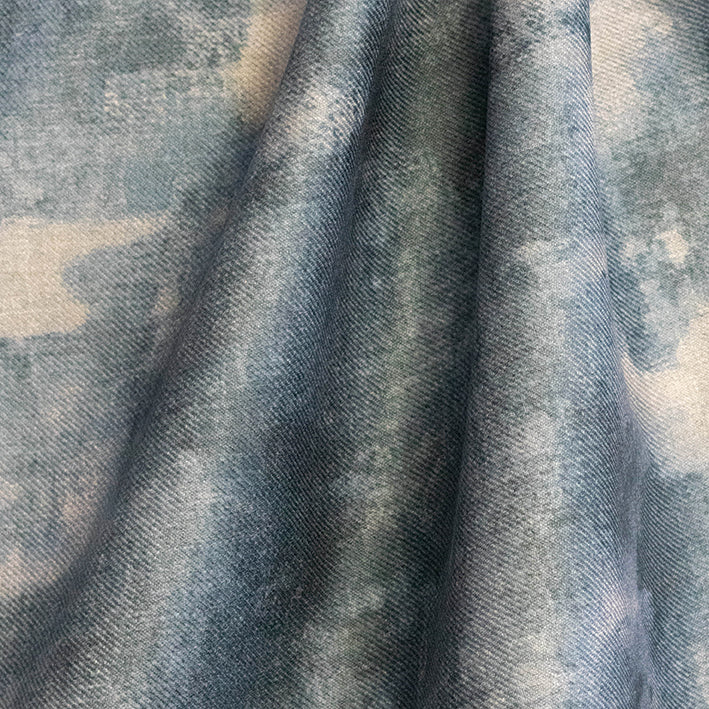 Like a cloudy day filled with shimmering rain clouds, this beautiful material has a sheen that moves with the material over a blue, navy and silver background. Wonderful for curtains, blinds, cushions, and occasional upholstery.